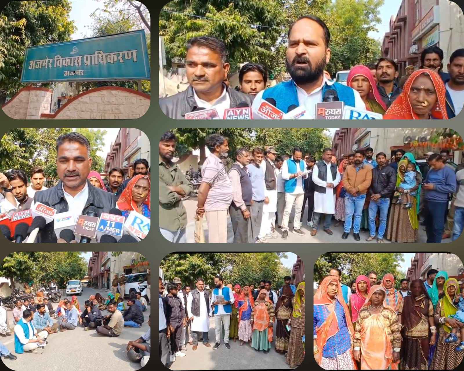 अजमेर न्यूज़: गाड़िया लोहार बस्ती जादूगर में क्वार्टर नंबर 13 सहित अन्य क्वार्टरों पर गैर लोहार कोली समाज के परिवार द्वारा जबरन किए गए कब्जे के विरुद्ध पिछले लंबे समय से गाड़िया लोहार विकास समिति और राष्ट्रीय लोकतांत्रिक पार्टी द्वारा गाड़ियां लोहार परिवारों को न्याय दिलाने के लिए आंदोलन चलाया जा रहा है लेकिन शासन प्रशासन और एडीए के कानों पर कोई जूं नहीं रेंग रही। आज पीड़ित परिवार के लोगों के साथ स्थानीय पार्षद पति निर्मल बेरवाल और राष्ट्रीय लोकतांत्रिक पार्टी के आशीष सोनी के नेतृत्व में एडीए के अंदर धरना प्रदर्शन किया गया। राष्ट्रीय लोकतांत्रिक पार्टी के जिला संयोजक आशीष सोनी ने बताया कि गाड़िया लोहार समाज को आवंटित क्वार्टर संख्या 13 में अवैध कब्जा कर संचालित की जा रही अनैतिक गतिविधियों पर कार्रवाई ओर क्वार्टर का कब्जा असल गाड़िया लोहार को दिलाने की मांग को लेकर धरना दिया जा रहा है।। पार्षद पति और कोली समाज के जिला अध्यक्ष निर्मल बेरवाल ने बताया कि गाड़िया लोहार समाज को आवंटित 13 नंबर क्वार्टर पर अमीन अब्बास और लक्ष्मी नाम की महिला ने अवैध कब्जा कर रखा है ओर वहां अवैध रूप अनैतिक गतिविधियां संचालित की जा रही हैं। इसे लेकर समाज के लोगों ने अजमेर विकास प्राधिकरण और नगर निगम को कई बार शिकायत दी। इसके बावजूद भी कोई ठोस कार्रवाई नहीं की जा रही। जिला संयोजक ने बताया कि इसके कारण समाज के लोगों में भारी आक्रोश है।
