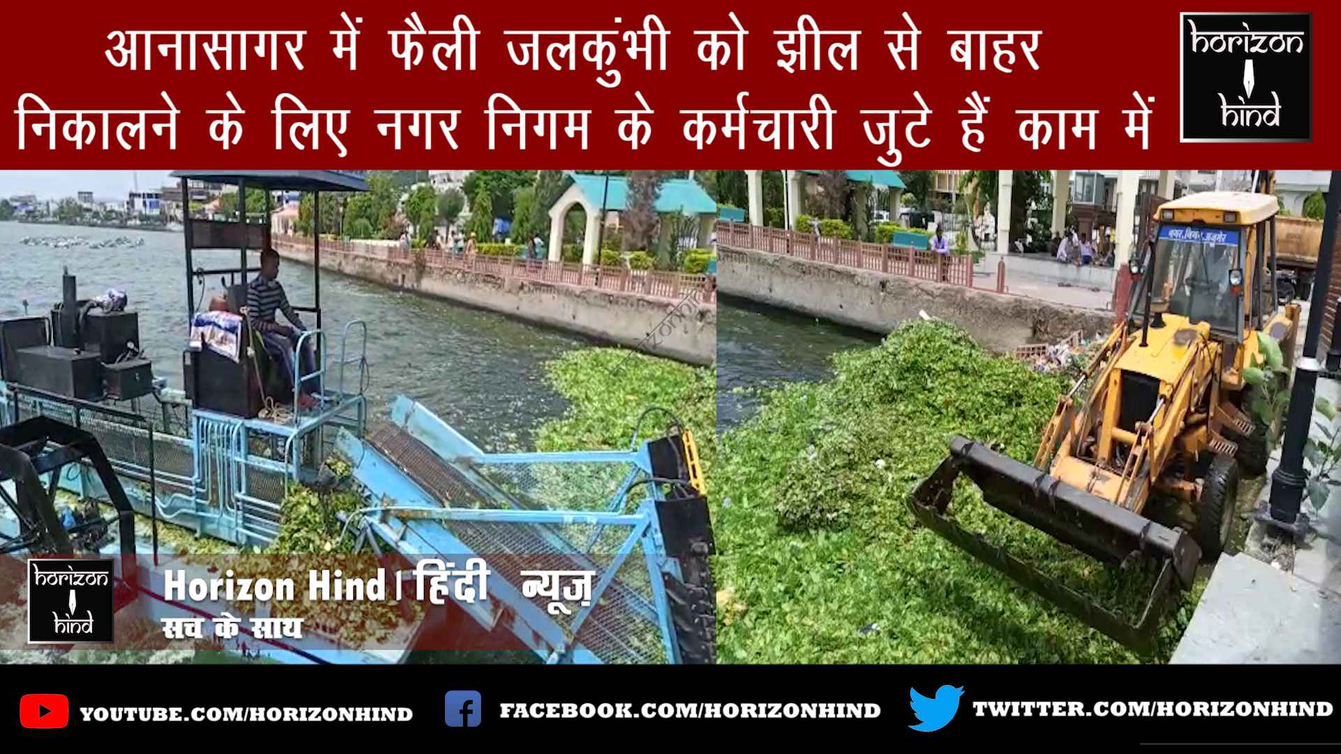 अजमेर न्यूज़: झील में डी वेंडिंग मशीन जेसीबी और डंपर की सहायता से रोजाना हटाया जा रहा है जलकुंभी को
