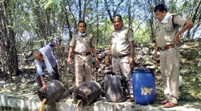 आबकारी पुलिस ने कार्रवाई कर 6 सौ लीटर वाश व भट्टिया नष्ट की
