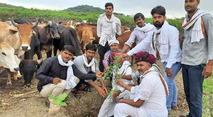 गायों को चारा गुड खिलाया व गौशाला में वृक्षारोपण किया