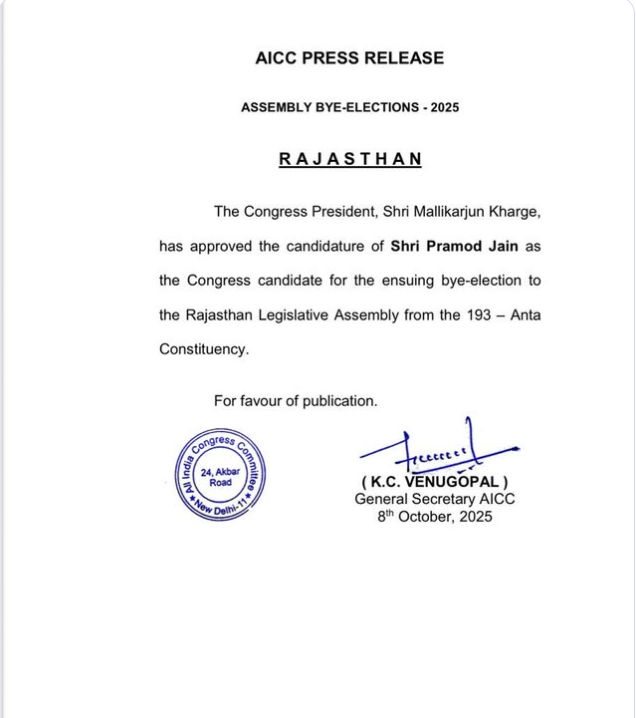 कांग्रेस प्रदेशाध्यक्ष गोविंद सिंह डोटासरा ने भाया को प्रत्याशी बनाए जाने पर बधाई दी। उन्होंने कहा— “प्रमोद जैन भाया जी को अंता विधानसभा उपचुनाव के लिए कांग्रेस प्रत्याशी बनाए जाने पर हार्दिक बधाई। मुझे पूरा भरोसा है कि जनता आपके नेतृत्व और जनमुद्दों के प्रति समर्पण को आशीर्वाद देगी और कांग्रेस को विजयी बनाएगी।”
