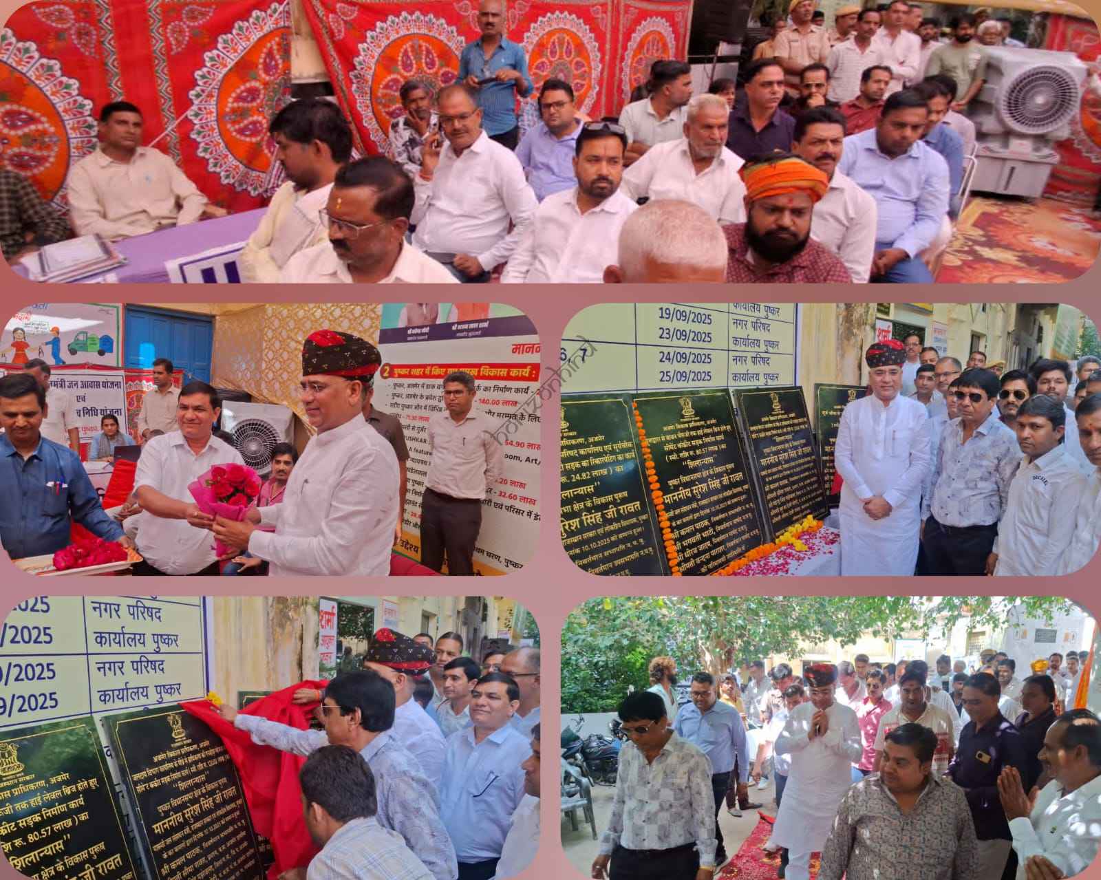तीर्थ नगरी पुष्कर में आगामी अंतरराष्ट्रीय पुष्कर मेले को लेकर तैयारियां तेज हैं। राजस्थान की भाजपा सरकार और जल संसाधन मंत्री व पुष्कर विधायक सुरेश रावत के नेतृत्व में सड़क, बिजली और पानी जैसी मूलभूत सुविधाओं को सुदृढ़ किया जा रहा है। इसी के तहत अजमेर विकास प्राधिकरण ने करीब 16 करोड़ रुपये की लागत से विभिन्न विकास कार्य प्रस्तावित किए हैं। शुक्रवार को नगर परिषद पुष्कर में मंत्री सुरेश रावत ने 5 करोड़ 86 लाख रुपये के छह कार्यों का शिलान्यास किया। इनमें सूर्य चौक से जयपुर घाट तक सीमेंट कंक्रीट सड़क (40 लाख), जलदाय विभाग कार्यालय के पीछे से गनाहेड़ा योजना तक सड़क (120 लाख), मारवाड़ बस स्टैंड से नगर परिषद कार्यालय तक और सूर्य चौक से वराह घाट तक बीटी सड़क रिकारपेटिंग (24.82 लाख), जलदाय विभाग कार्यालय से मोतीसर मार्ग तक सड़क सुदृढ़ीकरण (143 लाख) और रेलवे क्रॉसिंग से सावित्री मंदिर तक सड़क सुदृढ़ीकरण (160 लाख) कार्य शामिल हैं। उन्होंने अधिशासी अभियंता अरुण वर्मा को सड़कों की गुणवत्ता सुनिश्चित करने के निर्देश दिए। मंत्री रावत ने कहा कि पुष्कर एक अंतरराष्ट्रीय तीर्थस्थल है, जहां प्रतिदिन हजारों पर्यटक आते हैं, इसलिए सुविधाओं का विस्तार जरूरी है। उन्होंने मुख्यमंत्री भजनलाल शर्मा का आभार जताते हुए बताया कि पुष्कर में 100 बेड के नए अस्पताल के लिए भूमि आवंटन और पट्टा स्वीकृत हो चुका है। साथ ही नगर परिषद आयुक्त जनार्दन शर्मा को नए भवन की आवश्यकता पर प्रस्ताव तैयार करने के निर्देश दिए। रावत ने बताया कि जगत पिता ब्रह्मा मंदिर कॉरिडोर की डीपीआर लगभग तैयार है, जो पुष्कर के धार्मिक विकास की दिशा में अहम कदम होगा। साथ ही चंबल–कालीसिंध जल परियोजना के तहत मोरसागर बांध और पुष्कर सरोवर को जोड़ने की दिशा में काम आगे बढ़ रहा है। उन्होंने पूर्व भाजपा पार्षदों को वार्डों की नाली व सड़क समस्याओं के शीघ्र निस्तारण का भरोसा दिलाया और कहा कि जरूरत पड़ी तो विधायक निधि से राशि दी जाएगी। इस अवसर पर एसडीएम गुरु प्रसाद तंवर,थाना प्रभारी विक्रम सिंह राठौड़, पूर्व सभापति कमल पाठक,भाजपा मंडल अध्यक्ष भुवनेश पाठक, शक्ति सिंह, अशोक पाराशर,पुष्कर नारायण भाटी,देवांश दामू पाराशर*और लाभांशु वैष्णवसहित कई भाजपा पदाधिकारी उपस्थित रहे। मंत्री ने कहा कि ये कार्य पुष्कर के सर्वांगीण विकास की दिशा में मील का पत्थर साबित होंगे।