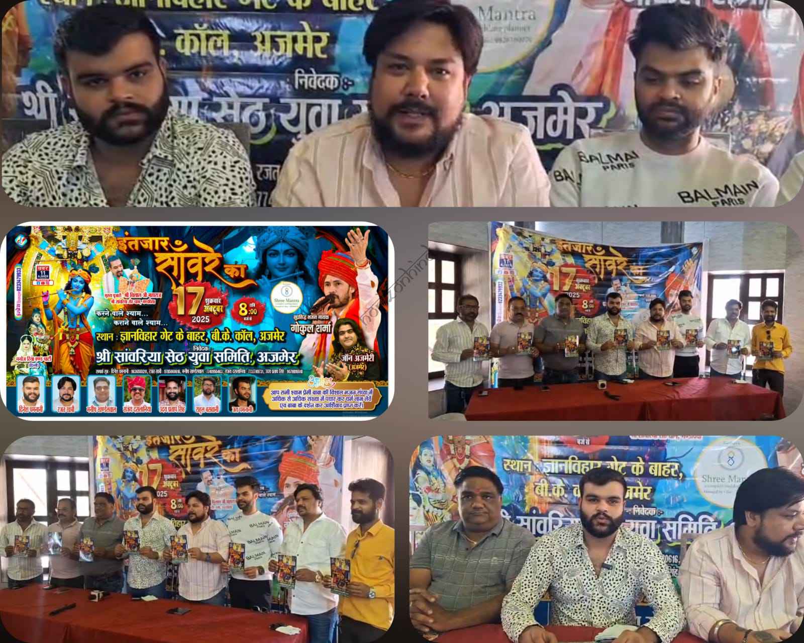 17 अक्टूबर 2025 शुक्रवार को ज्ञान विहार गेट के बाहर बीके कॉल अजमेर में श्री सांवरिया सेठ युवा समिति के द्वारा इंतजार सांवरे का नामक विशाल भजन संध्या का आयोजन किया जा रहा है। सोमवार को आयोजित पत्रकार वार्ता के दौरान श्री सांवरिया सेठ युवा समिति के रजत खत्री, दिनेश