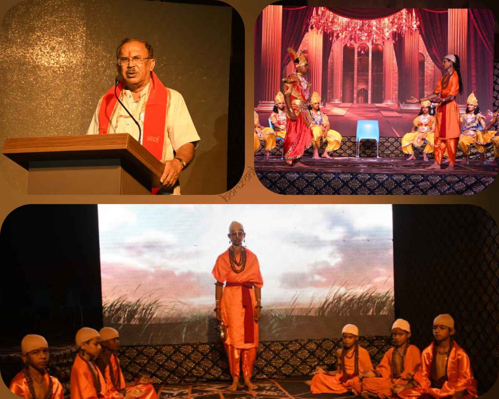 इसी क्रम में शुरुआत भारत संवाद से हुई जिसमें भारत माता के स्वरूप के माध्यम से भारतीय संस्कृति, वेदों और गीता के उपदेशों का भावपूर्ण चित्रण किया गया। इसके बाद चाणक्य संवाद में तक्षशिला से लेकर मगध नरेश घनानंद तक के ऐतिहासिक प्रसंगों को जीवंत किया गया। इसने राष्ट्र रक्षा और एकता का संदेश दिया।