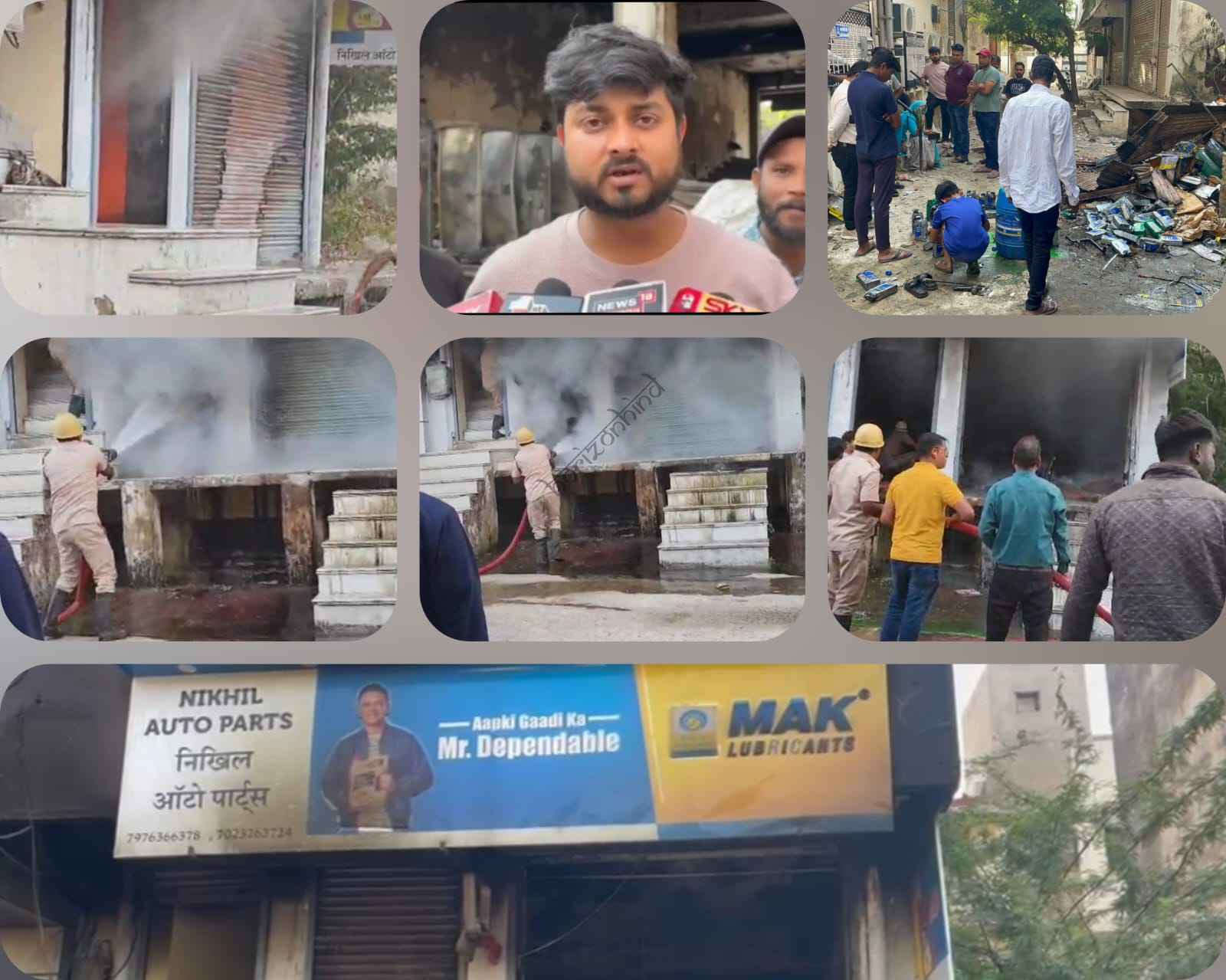 क्रिश्चियन गंज थाना अंतर्गत स्टीफन चौराहा स्थित बालाजी मार्केट में निखिल ऑटो पार्ट्स की दुकान में लगी भीषण आग,