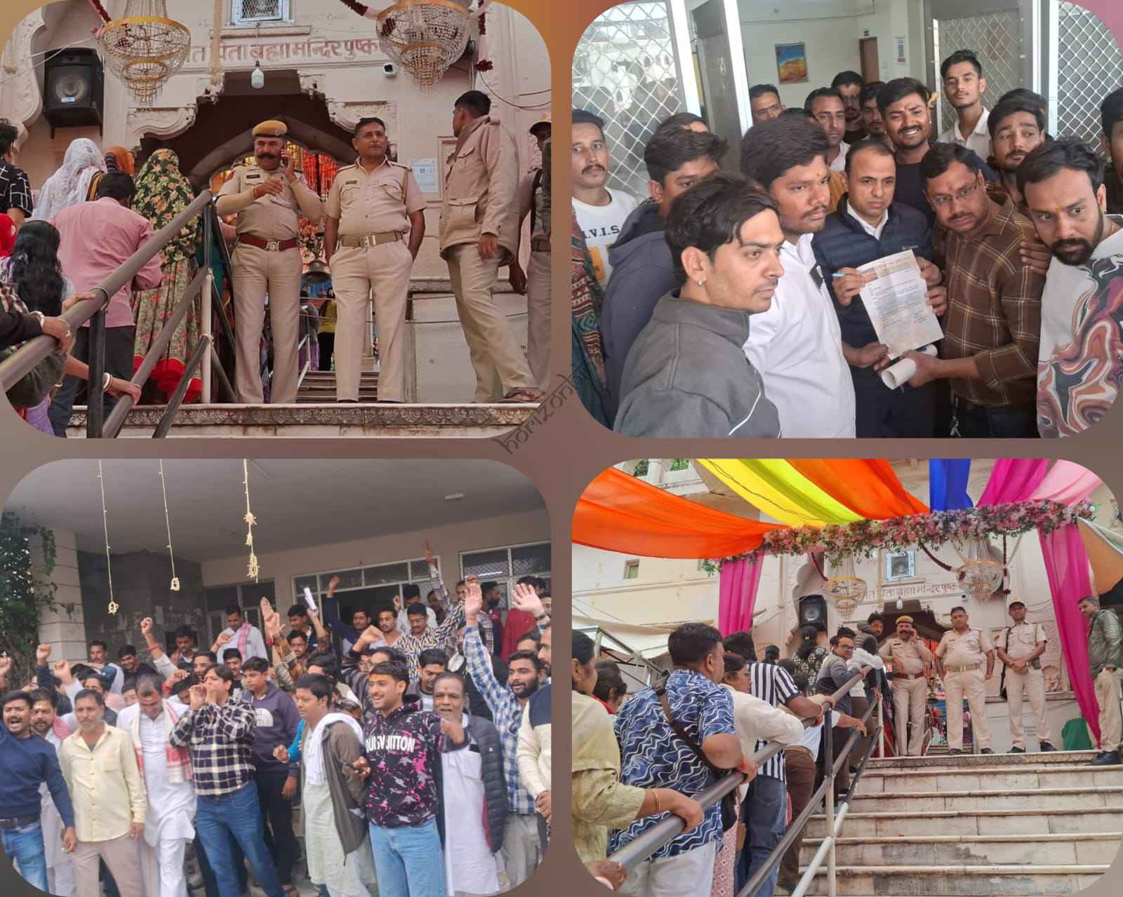 ब्रह्मा मंदिर में श्रद्धालुओं और तीर्थ पुरोहितों के साथ दुर्व्यवहार का मामला गरमाया, पुरोहितों ने जताया विरोध — मेले के बहिष्कार की दी चेतावनी