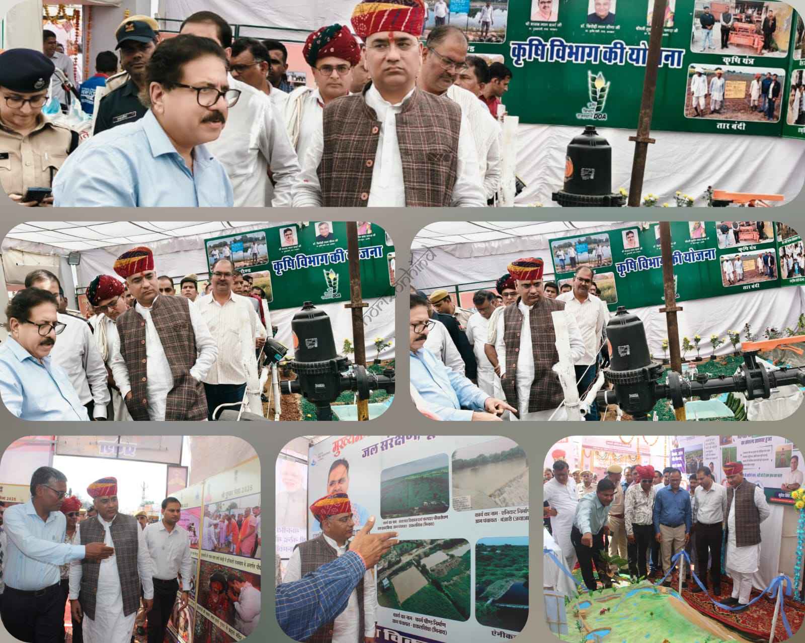 अंतराष्ट्रीय पुष्कर मेला में कृषि एवं उद्यानिकी विभाग द्वारा विकास प्रदर्शनी में विभागीय योजनाओं के अनेक मॉडल प्रदर्शित किए गए है । जो किसानों के लिए रुचिकर बने हुए है । कृषि विभाग के संजय तनेजा संयुक्त निदेशक कृषि (विस्तार) जिला परिषद अजमेर ने बताया कि राज्यसरकार की फ्लैगशिप योजना फार्म पौंड और तारबंदी योजना ,सोलर पंप योजना के मॉडलों ने किसानों अपनी और आकर्षित किया है । जल हौज , ग्रीन हाउस , बूंद बूंद सिंचाई योजना , मिनी स्प्रिंकलर , गोवर्धन जैविक उर्वरक योजना में बर्मी कंपोस्ट , प्याज भंडारण , शेड नेट हाउस , प्रो ट्रेज मे सैंपलिंग, फलदार बगीचा मॉडल, प्लास्टिक मल्च , लो टनल मे खेती, गुलाब की प्रोसेसिंग यूनिट, एजोला , बर्मी कंपोस्ट , रुफ टॉप गार्डेनिंग , रोटावेटर , सीड ड्रिल , हैरो ,कृषि यंत्र के मॉडल , प्राकृतिक खेती में जीवामृत , बीजामृत , निमास्त्र जैसे प्राकृतिक जैव उर्वरक , जैव कीटनाशी का कृषि मे उपयोग आदि योजनाओं पर विभाग द्वारा सजीव एवं प्रैक्टिकल माडल बना कर किसानों के लिए प्रदर्शित किया गया है जो जन सैलाब और किसानों को पसंद आया है । इससे पूर्व सुरेश सिंह रावत कैबिनेट मंत्री जनसंसाधन विभाग एवं विधायक पुष्कर ने जिला कलक्टर लोक बंधु एवं वंदिता राणा पुलिस अधीक्षक तथा स्थानीय जनप्रतिनिधियों सहित प्रदर्शनी का उद्घाटन किया । इस दौरान कृषि एवं उद्यान विभाग के डॉ के.पी. सिंह उपनिदेशक उद्यान ने बगीचे में ऑटोमेशन तकनीक की प्रदर्शनी में लगाई गई मशीन के बारे में बताया , कृषि अधिकारी डॉ दिनेश कुमार व पुष्पेंद्र सिंह , अनिल गुर्जर , रामेश्वर लाल गैना उपप्रियोजना निदेशक आत्मा योजना , सहायक कृषि अधिकारी कन्हैयालाल सुनारीवाल , राजेश भोगवत, मुकेश कुमार ,लक्ष्मीनारायण तंवर , मनोहरलाल , मुकेश मीना मैनेजर राजहंस नर्सरी बांसेली, कृषि पर्यवेक्षक सुभाष खोजा , रामरतन चौधरी , महेंद्र चौधरी , रामप्रसाद , मालती जागृत , पुष्पांजलि कुमावत धर्मेंद्र सिंह राठौड़ विभागीय अधिकारी प्रदर्शनी स्थल पर मौजूद रहकर किसानों को अनुदानित योजनाओं की जानकारी दे रहे है ।