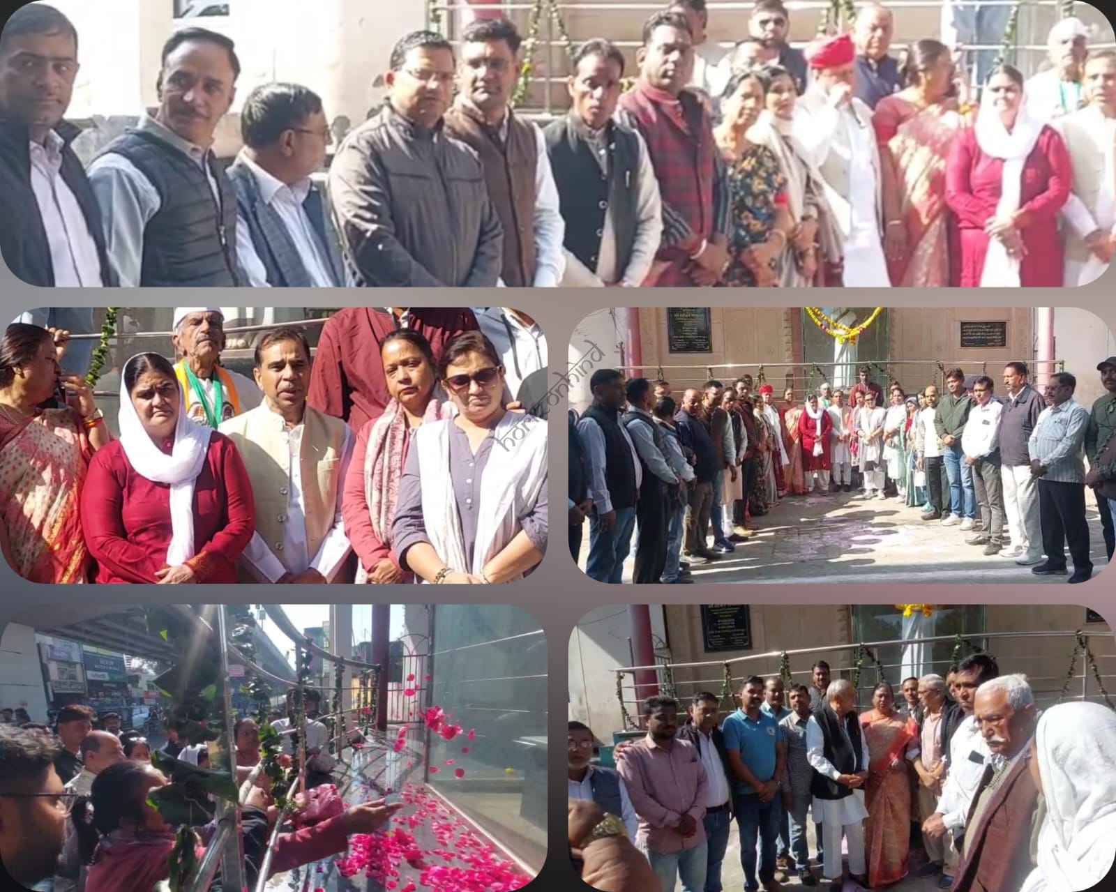 अजमेर शहर जिला कांग्रेस द्वारा 19 नवम्बर बुधवार को भारत की पूर्व प्रधानमंत्री स्वर्गीय इंदिरा गांधी की 108 वीं जन्म जयंती पर उन्हें श्रद्धांजलि अर्पित की। कांग्रेस नेताओं ने श्रद्धांजलि अर्पित करने के बाद बताया कि भारत की एकता और अखंडता को संजोये रखने के लिए जिन्होंने अपनी दृढ़ इच्छा शक्ति कुशल नेतृत्व, दूरदर्शिता से महत्वपूर्ण भूमिका निभाई और एक सशक्त प्रगतिशील भारत का निर्माण किया ऐसी साहस की प्रतिमूर्ति भारत की प्रथम महिला प्रधानमंत्री हमारे आदर्श इंदिरा गांधी के जन्म दिवस पर उन्हें हम विनम्र श्रद्धांजलि अर्पित करते हैं। भारत की आयरन लेडी इंदिरा गांधी का जीवन लाखों भारतीयों के लिए प्रेरणा का स्रोत है। इंदिरा गांधी ने देश की संप्रभुता और अखंडता के लिए अपने जीवन का बलिदान दिया। देश की पहली महिला प्रधानमंत्री भारत रत्न श्रीमती इंदिरा गांधी को जन्म जयंती पर हार्दिक श्रद्धांजलि अर्पित करते हैं।इस अवसर पर अजमेर शहर जिला कांग्रेस की वरिष्ठ पदाधिकारी और कार्यकर्ताओं के बीच निवृत्तमान जिला अध्यक्ष विजय जैन, नसीम अख़्तर, महेंद्र सिंह रलावता, रामचंद्र चौधरी, द्रोपदी कोली आदि कई वरिष्ठ नेता भी मौजूद रहे।