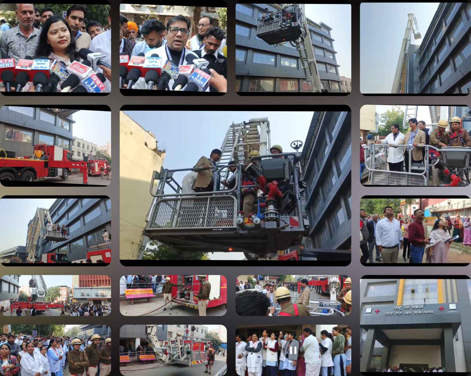 जवाहर लाल नेहरू अस्पताल के पीडियाट्रिक विभाग की नई बिल्डिंग के टेरेस पर लगी आग में फंसे मासूम बच्चे का रेस्क्यू,