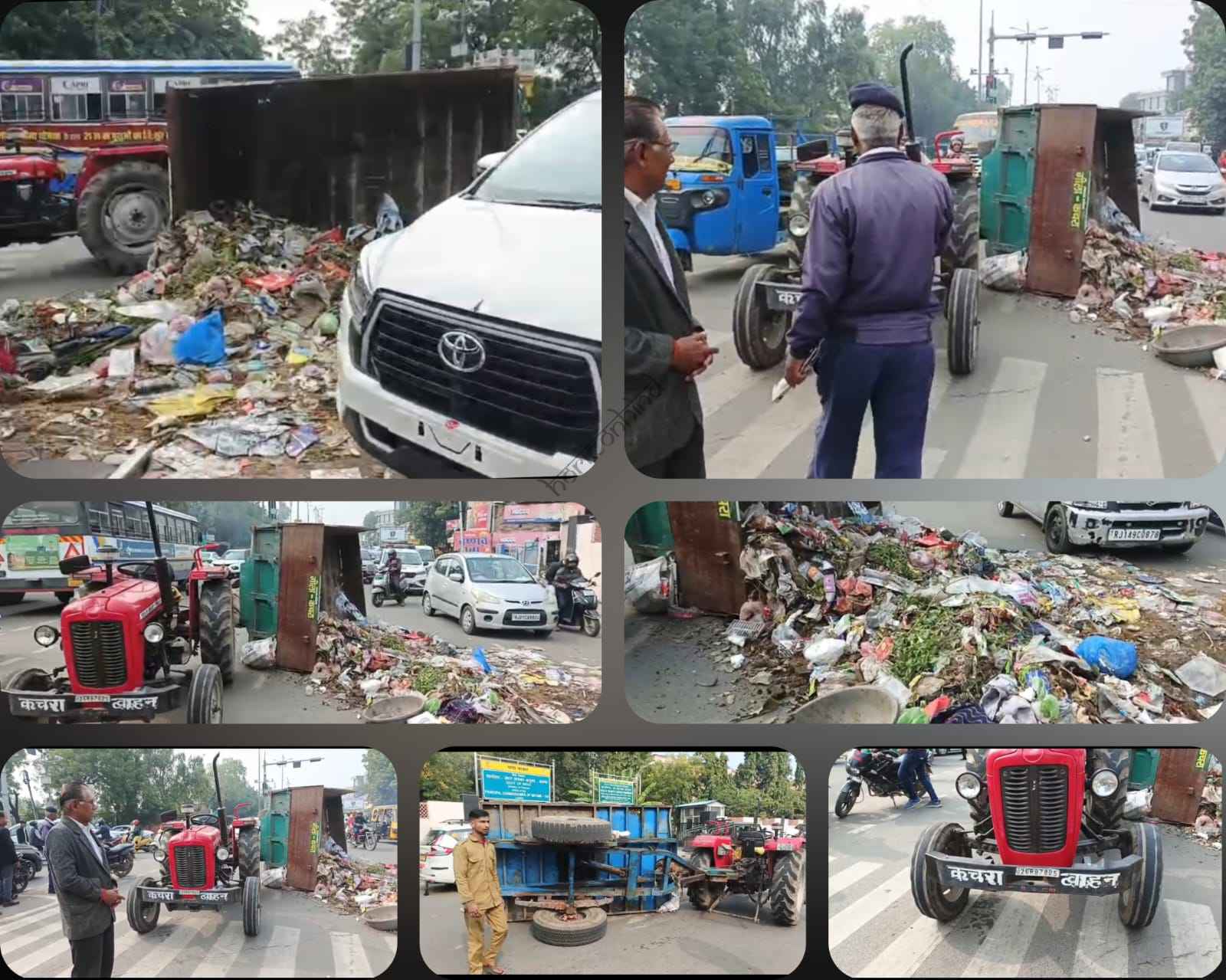 सेशन कोर्ट चौराहा बस स्टैंड के पास कचरा से भरा नगर निगम का ट्रैक्टर पलटा, काफी देर तक यातायात रहा बाधित