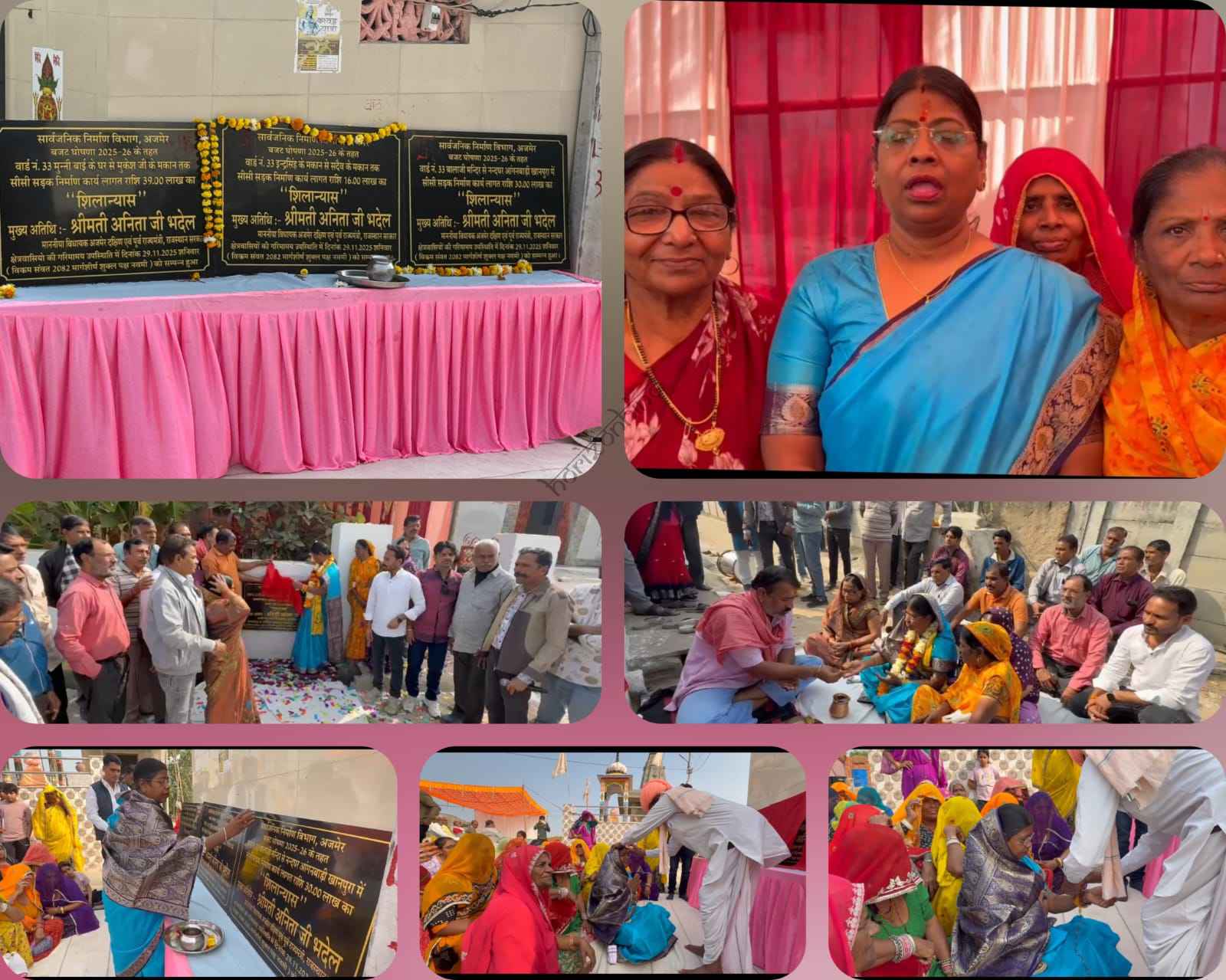 29 नवंबर 2025 शनिवार सुबह 9 बजे वार्ड नं. 32 और 33 में सार्वजनिक निर्माण विभाग बजट घोषणा 2025- 26 के तहत वार्ड 33 में मुन्नी बाई के घर से मुकेश जी के घर तक 39 लाख रुपए की लागत से बनने वाली सीसी सड़क, इसी तरह इंद्रजीत के मकान से सहदेव के मकान तक 16 लाख रुपए और बालाजी मंदिर से नंद घर आंगनबाड़ी तक 30 लाख रुपए की लागत से बनने वाली सीसी सड़क निर्माण कार्य का विधिवत शिलान्यास दक्षिण विधायक अनीता भदेल के द्वारा विधिवत पूजा अर्चना की साथ किया गया। इस मौके पर क्षेत्रवासियों ने अपनी लोकप्रिय विधायक का चुनरी और माला पहनकर भव्य स्वागत किया और उनका आभार भी जताया।