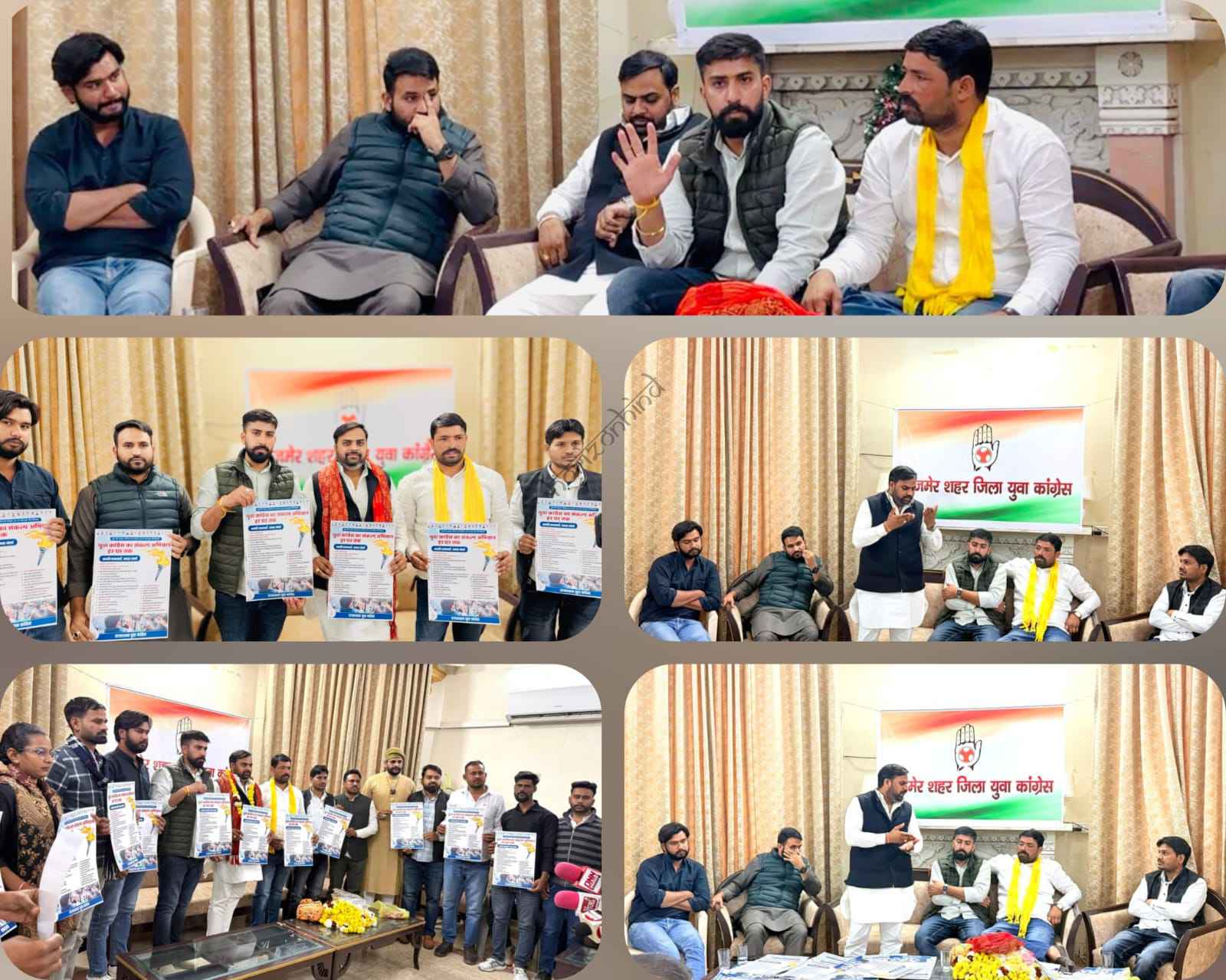 • युवा कांग्रेस के राष्ट्रीय प्रभारी मनीष शर्मा जी के द्वारा पूरे प्रदेश के सभी जिलों में आगामी 100 दिनों की कार्यक्रम रूपरेखा तैयार करते हुए अजमेर शहर में सड़क, पानी, बिजली, महिला, बेरोजगार, और किसान पर हो रहे अत्याचारों के खिलाफ आवाज उठाने हेतु कार्य योजना त्यार कर के धरातल पर उतारने की तैयारी की।