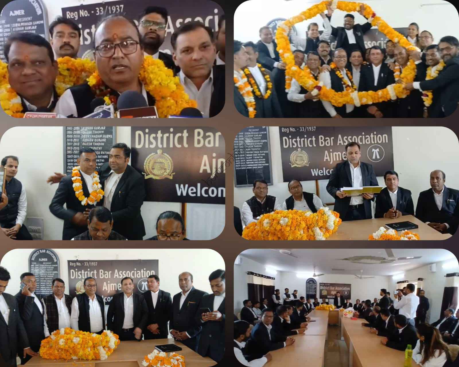अजमेर जिला बार एसोसिएशन के हाल ही में संपन्न हुए चुनावों के बाद नवनिर्वाचित कार्यकारिणी को निवर्तमान अध्यक्ष ने सौंपा चार्ज, सभी नवनिर्वाचित पदाधिकारी सदस्यों का माल्यार्पण कर किया स्वागत