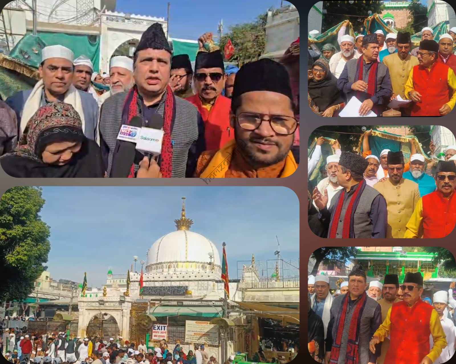 ख्वाजा मोइनुद्दीन चिश्ती रहमतुल्ला अलैह के 814 वें उर्स के मौके पर मुस्लिम राष्ट्रीय मंच के राष्ट्रीय अध्यक्ष इंद्रेश कुमार जी की जानिब से भेजी गई चादर आज ख्वाजा के दरबार में पेश की गई। चादर लेकर पहुंचे वक्फ की सदारत कर रहे नुमाइंदों ने बताया कि चादर के इस जुलूस में मुस्लिम राष्ट्रीय मंच के राष्ट्रीय संयोजक अबू बकर नकवी, रेशमा हुसैन, इरफान मिर्ज़ा, नवाबुद्दीन, बहन अमतुल सहित अनेक बहने भी शामिल है जिन्होंने अपने हाथों से इस चादर को 2 महीने की मेहनत के बाद बनाया जो आज ख्वाजा के दरबार में पेश की जा रही है। उन्होंने बताया कि इंद्रेश कुमार जी ने अपने संदेश में लिखा है कि भारत एक बार फिर से अखंड भारत बने जिस तरह से ख्वाजा का भारत था सभी हिंदू मुस्लिम सिख इसाई मिलजुल कर भाईचारगी के साथ देश की तरक्की में शामिल हो इस तरह की दुआ की गई है। खादिम दौलत अली चिश्ती की सदारत में ख्वाजा के दरबार में चादर पेश की गई सभी की दस्तार बंदी कर तबर्रूक भेंट किया गया।