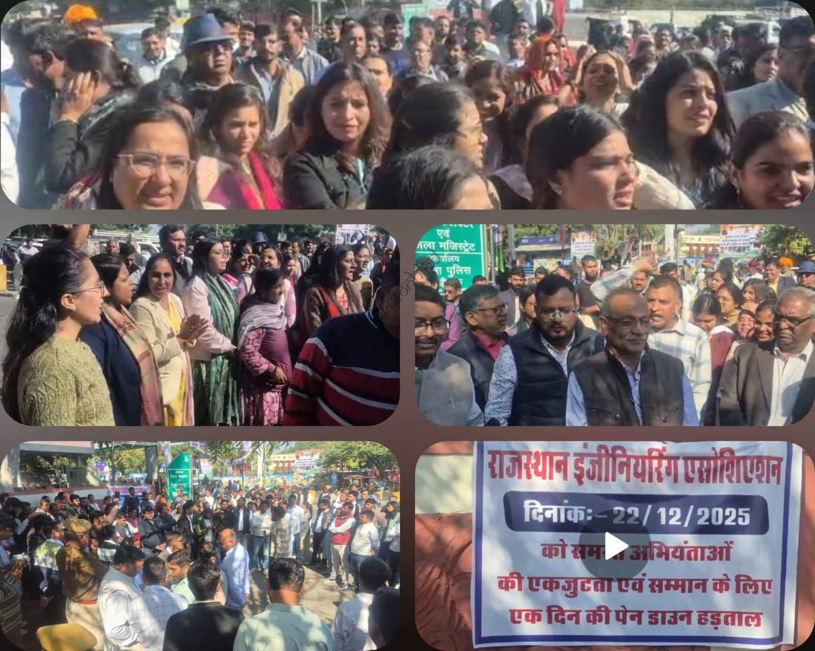 सार्वजनिक निर्माण विभाग के अधिशाषी अभियंता विपिन जिंदल के साथ वकीलों द्वारा की गई मारपीट को लेकर सोमवार को एक बार फिर राजस्थान इंजीनियर्स एसोसिएशन के बैनर तले समस्त स्टाफ ने एक दिन की पेन डाउन हड़ताल करते रैली के रूप में कलेक्ट्रेट पहुंच घटना पर नारेबाजी करते हुए प्रदर्शन किया। प्रदर्शन के दौरान इंजिनियर्स के प्रतिनिधि मंडल ने जिला कलेक्टर को ज्ञापन सौंपकर इस प्रकरण में दोषियों के खिलाफ कार्रवाई करने एवं स्टाफ को सुरक्षा देने मांग की। प्रदर्शन को देखते हुए कलेक्ट्रेट पर बेरीकेट्स लगा कर भरी पुलिस बल तैनात किया गया था।