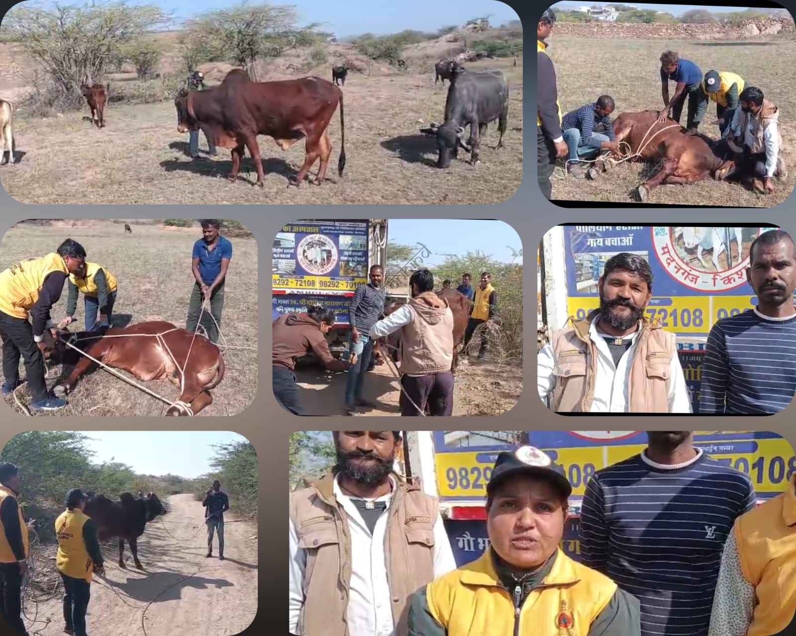 सूचना पर पहुंचे रेस्क्यू दल ने गोविंद गौ चिकित्सा रथ के जरिए प्राथमिक उपचार देकर पहुंचाया किशनगढ़ अस्पताल