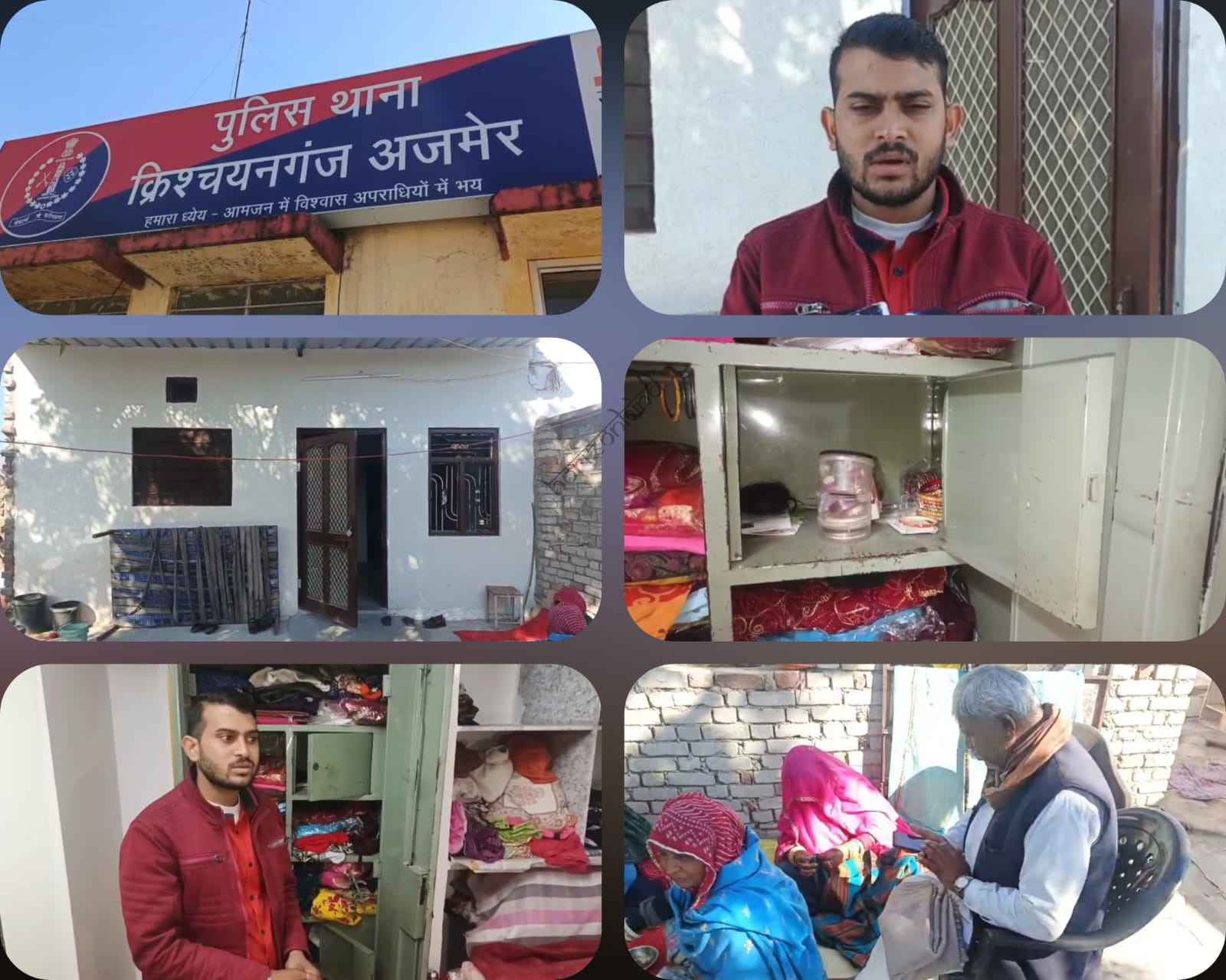 अजमेर के क्रिश्चियन गंज थाना अंतर्गत श्याम कॉलोनी कबीर नगर में शातिर बदमाश मात्र 10 से 15 मिनट में दिनदहाड़े चोरी की वारदात को अंजाम देकर घर से सोने चांदी के जेवरात व नगदी चोरी कर ले गए। घर में मौजूद महिला गर के गेट की कुंडी लगा कर पड़ोस में पानी भरने गई थी तभी बाइक पर आए तीन युवकों ने चोरी की वारदात को अंजाम दे डाला। महिला के बेटे चन्द्र प्रकाश राव ने क्रिश्चयनगंज थाने में चोरी की रिपोर्ट देकर कार्यवाही की मांग की है। पुलिस ने मामला दर्ज कर जांच शुरू कर दी है। पीड़ित कबीर नगर लोहागल निवासी चन्द्र प्रकाश राव ने बताया वह प्राइवेट जॉब करता है 22 दिसम्बर को रोजाना की तरह सुबह ऑफिस चला गया दिन के समय मां घर पर अकेली थी जो गेट की कुंडी लगा कर पड़ोस में एक घड़ा पानी लेने के लिए गई 10 मिनट बाद जब वापस आई तो पता चला कि घर की आलमारी में रखे पांच सोने के मांदलिए, दो पायजेब की जोड़ी, पांच चांदी के सिक्के व करीब चार हजार नकद चोरी हो चुकी थी। आसपास पूछताछ करने पर पता चला कि तीन युवक बाइक पर आए थे पड़ोसियों ने मिलने वाला समझकर कुछ नहीं बोला। पीड़ित की रिपोर्ट पर क्रिश्चयन गंज थाना पुलिस ने मामला दर्ज जांच शुरू कर दी है।