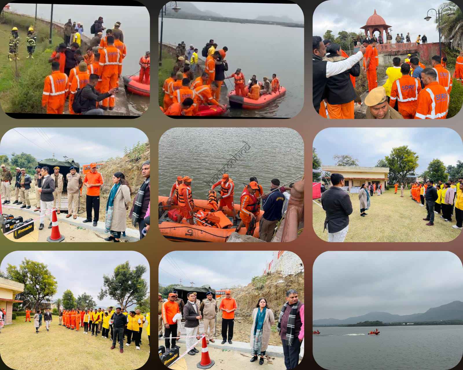 आज दिनांक 23.01. 2026 को अजमेर में वरूण सागर (फॉय सागर) पर आयोजित की गई। मॉक ड्रिल में एन.डी.आर.एफ. के साथ नागरिक सुरक्षा, एस.डी.आर.एफ., अग्निशमन, चिकित्सा विभाग, पुलिस एवं आपदा मित्र शामिल हुए। मॉक ड्रिल वास्तवित आपदा के समय सभी संबंधित ऐजेन्सीयों के रिस्पोंस टाईम को परखने के लिये की गई जिसमें जिला ई.ओ.सी. कन्ट्रोल रूम को प्रातः 8:40 पर सूचना मिलने पर सभी को चेतावनी संदेश प्रसारित किया गया व सभी टीमों का अपने-अपने कार्यस्थल से वास्तविक सूचना प्राप्त होने पर घटनास्थल पर पहुँचने का समय नोट किया गया। मॉक ड्रिल में अत्यधिक वर्षा के कारण जल भराव के चलते वरूण सागर में अधिक पानी आ जाने के कारण कुछ नागरिकों के फंसे होने की सूचना प्राप्त होने पर एन.डी.आर.एफ., नागरिक सुरक्षा, व एस.डी.आर.एफ. ने संयुक्त बचाव अभियान चलाकर सभी को सुरक्षित बाहर निकाला, जिसमें प्रथम प्रतिक्रियाकर्ता नागरिक सुरक्षा दल ने तुरंत मौके पर पहुँचकर 01 डूबते व्यक्ति को बाहर निकाला, जिसके तुरंत बाद गहरे पानी में 3 अलग-अलग स्थानों पर फंसे व्यक्तियों को एस.डी.आर.एफ. की टीम ने नाव से से रेस्क्यू किया एवं अधिक गहरे पानी में दूरी पर फंसे व्यक्यिों को एन.डी.आर.एफ. की टीमों ने अपनी दो नावों व अन्य उन्नत बचाव उपकरणों के जरिये बचाकर सुरक्षित निकाला। तत्पश्चात सभी हताहतों का मेडीकल टीम द्वारा उपचार किया गया व पास ही क्षतिग्रस्त हुए भवन से एन.डी.आर.एफ. टीम द्वारा कटर आदि उपकरणों का प्रयोग करते हुए फंसे व्यक्तियों को सुरक्षित बाहर निकालने का प्रदर्शन किया गया। अतः मॉक ड्रिल के तहत अन्त में सभी दलों द्वारा श्रीमती गरिमा नरूला, उपखण्ड अधिकारी, अजमेर को बचाव कार्यों की रिपोर्टिंग की गई व उनके द्वारा सभी घटना की समीक्षा उपरान्त ऑपरेशन पूर्ण होने की घोषणा की गई। मौके पर तहसीलदार अजमेर ओम सिंह लखावत, नायब तहसीलदार सुश्री दिपा यादव मौजूद रहे।