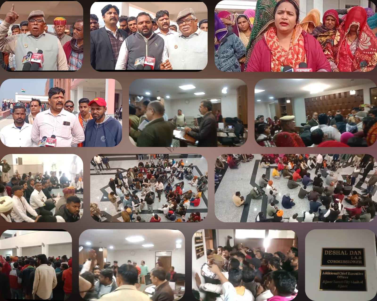 नगर निगम में 1 घंटे तक दिया धरना,नगर निगम कमिश्नर से मिलने की मांग, कमिश्नर के नीचे नहीं आने पर लोगों ने जबरन कमिश्नर के चेंबर में घुसकर दिया ज्ञापन,