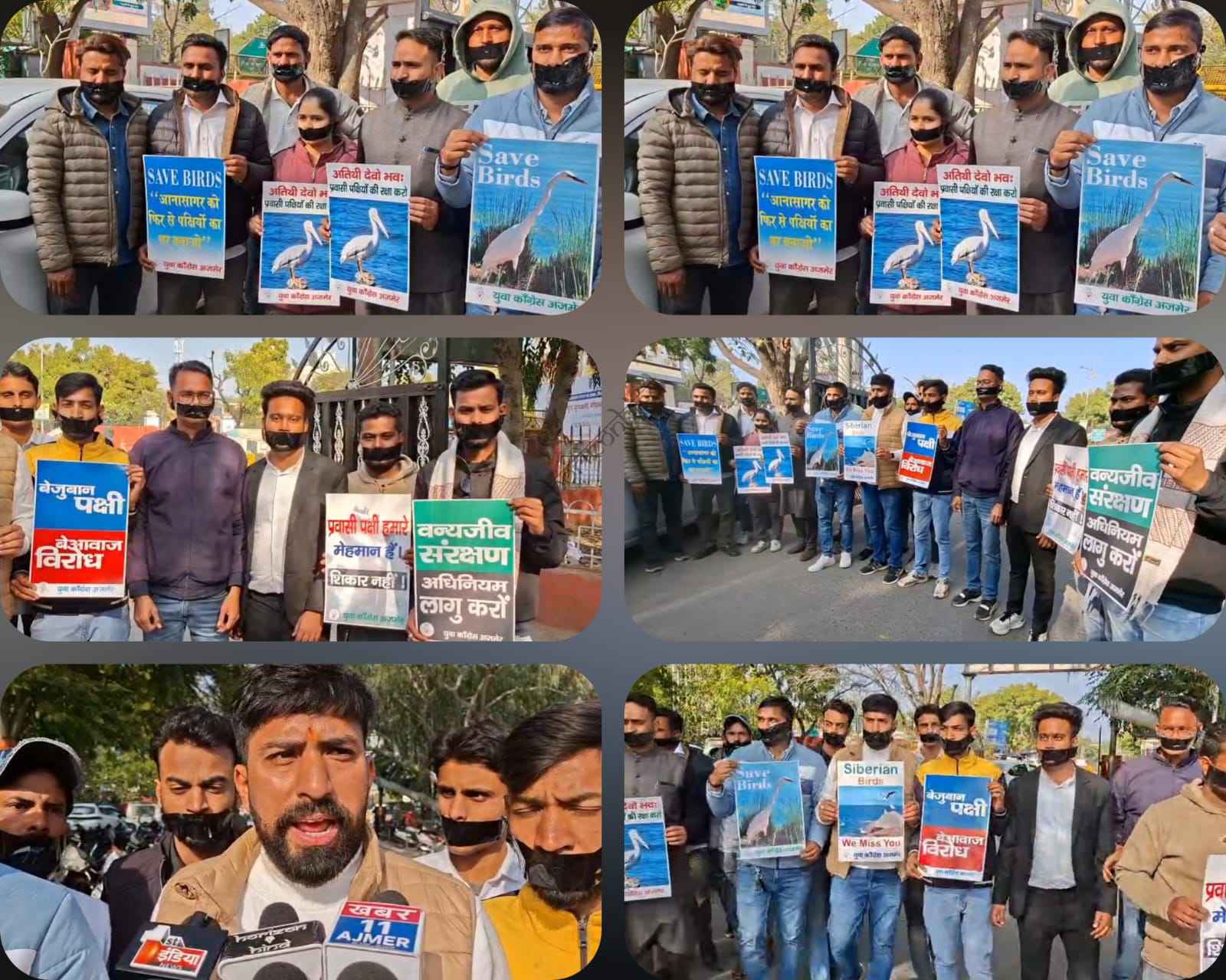 मोहित मल्होत्रा जिलाध्यक्ष युवा कांग्रेस ने बताया की ने अजमेर शहर की ऐतिहासिक आनासागर झील के सौंदर्यीकरण व आकर्षण का केंद्र बनाने वाले साइबेरियन पक्षियों की घटती जनसंख्या और साथ ही दो दिन पूर्व प्रवासी पक्षियों को शिकारियों द्वारा जाल बिछा कर पकड़े जान का वीडियो सामने आने पर युवा कांग्रेस के शिष्ट मंडल द्वारा Save Birds एवं उन प्रवासी पक्षियों की तस्वीरों वाले प्ले-कार्ड्स के साथ, मुंह पर काली पट्टी बांध पर विरोध करते हुए वो सभी प्रवासी पक्षी जो बीते कुछ वर्षों से आनासागर झील में आना बंद कर चुके हैं, प्रशासन का ध्यान आकर्षित करते हुए एक युवा कांग्रेस के प्रतिनिधिमंडल ने मुलाकात कर बताया कि कुछ वर्ष पूर्व तक आनासागर झील में साइबेरियन सहित अनेक दुर्लभ प्रवासी पक्षी बड़ी संख्या में आते थे, किंतु पिछले दो-तीन वर्षों से उनकी संख्या निरंतर घटती जा रही है, जो अत्यंत चिंताजनक है।