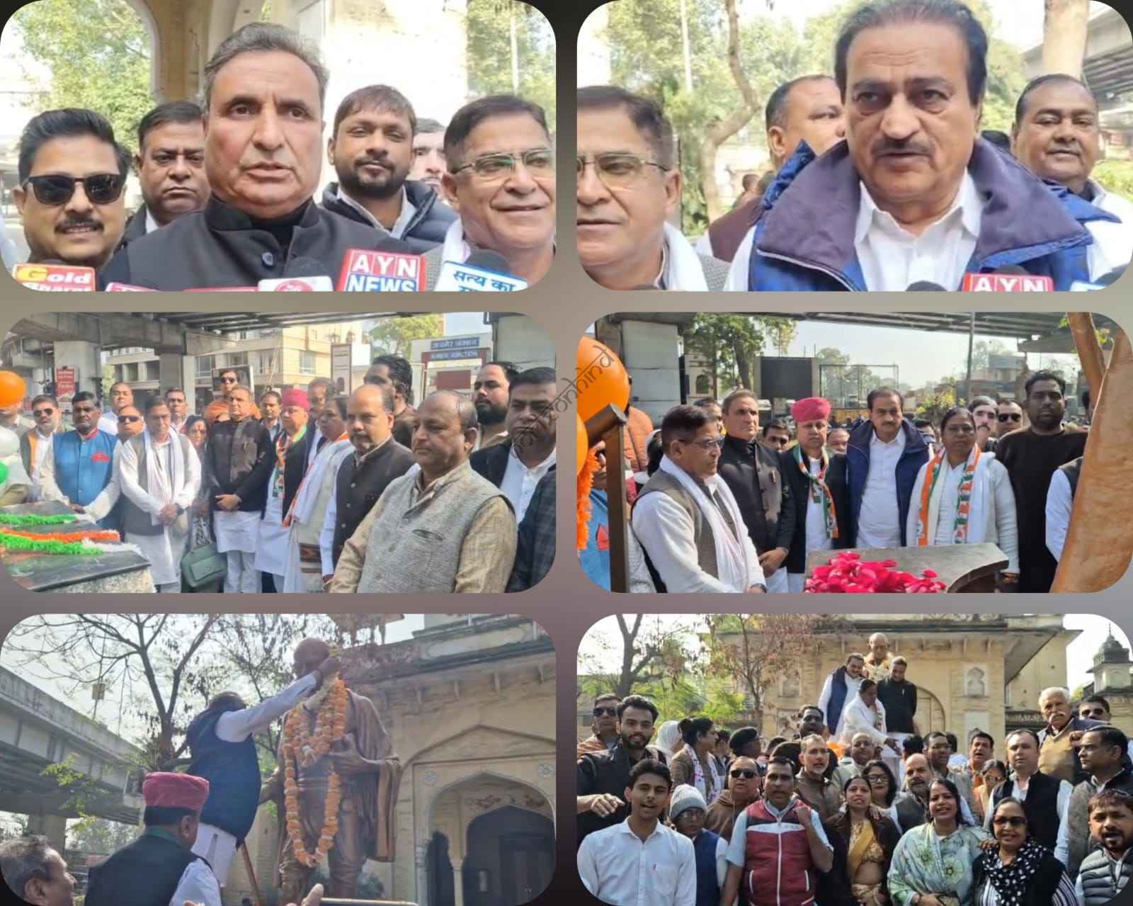 मोहनदास करमचंद गांधी यानि महात्मा गांधी के नाम से प्रख्यात बापू की आज पुण्यतिथि है। 2 अक्टूबर 1869 को पोरबंदर में जन्मे बापू की 30 जनवरी 1948 को नई दिल्ली बिरला हाउस में हत्या कर दी गई थी। आज उनकी पुण्यतिथि के अवसर पर पूरे देश भर में उन्हें याद करते हुए नमन किया जा रहा है। अजमेर में गांधी भवन स्थित बापू की प्रतिमा पर शहर कांग्रेस अध्यक्ष राजकुमार जयपाल, पूर्व आरटीडीसी अध्यक्ष धर्मेंद्र राठौर, पूर्व पीसीसी सचिव महेंद्र सिंह रलावता, पूर्व विधायक डॉ श्रीगोपाल बाहेती ,निगम में नेता प्रतिपक्ष द्रौपदी कोली सहित शहर कांग्रेस के तमाम वरिष्ठ पदाधिकारी और कार्यकर्ताओं ने गांधी जी की प्रतिमा पर माल्यार्पण कर उन्हें याद किया। इस मौके पर गांधी जी द्वारा किए गए कार्यों और अहिंसा का पाठ पढ़ाने के साथ ही प्रमुख घटनाओं और उद्देश्यों को याद किया गया। गांधी जी ने भारत छोड़ो आंदोलन में करो या मरो, अहिंसा परमो धर्म, अंग्रेजों भारत छोड़ो जैसे नारों के सारे देश को आजादी दिलाई।उनके बलिदान को बुलाया नहीं जा सकता आज पूरा देश बापू को याद करते हुए नमन कर रहा है।