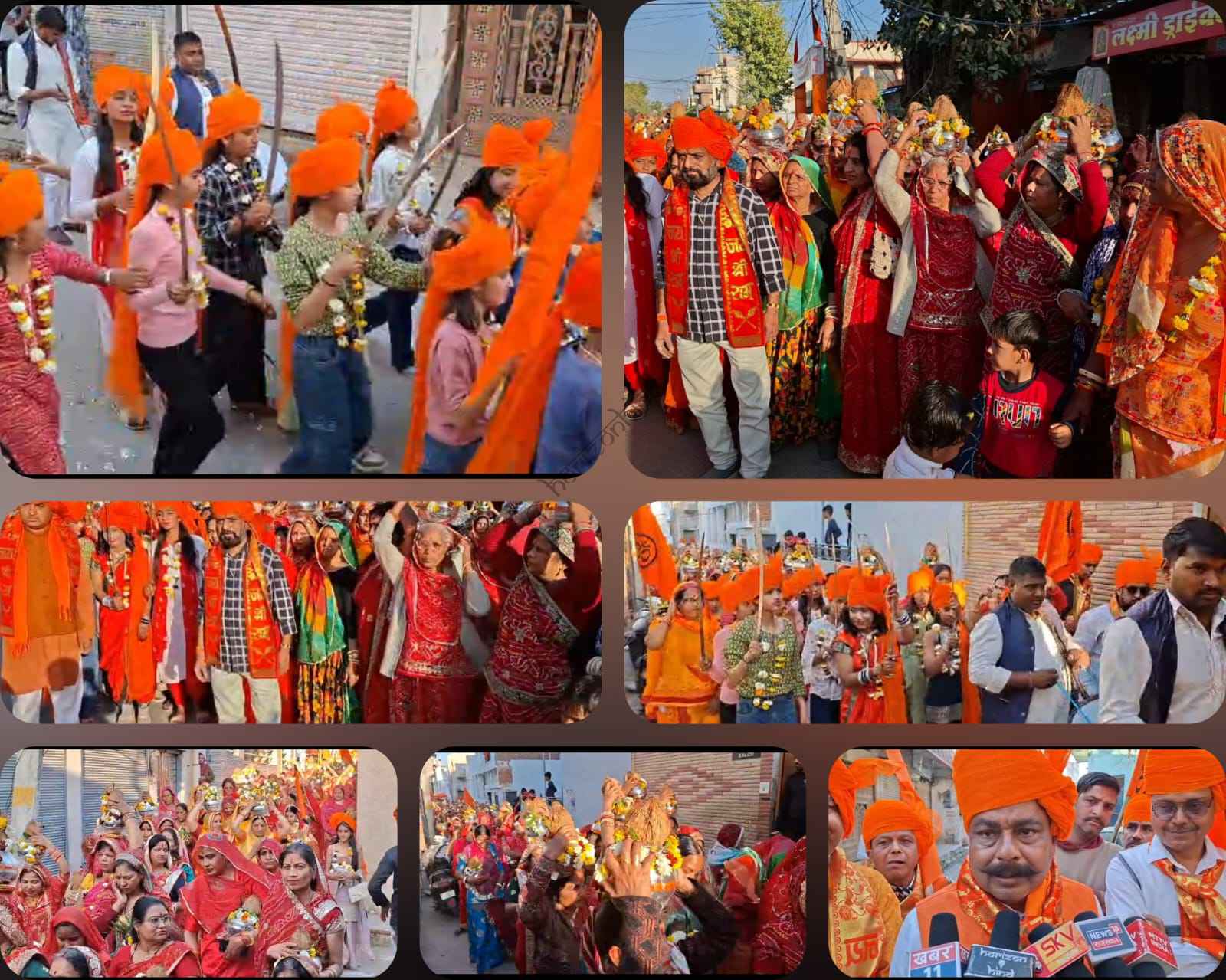 राष्ट्रीय स्वयंसेवक संघ के स्थापना के 100 वर्ष पूर्ण होने के उपलक्ष में संपूर्ण भारत वर्ष में 18000 से ज्यादा बस्तियों में विराट हिंदू सम्मेलन के आयोजन किया जा रहे हैं। इसी कड़ी में प्रेम नगर में होने वाले विराट हिंदू सम्मेलन से पूर्व शनिवार को विशाल कलश शोभा यात्रा निकाली गई। जिसमें सैकड़ो की संख्या में महिलाएं गेरूए वस्त्र धारण कर ओर पुरुष गेरुआ पगड़ी लगाकर डीजे और बैंड की धुन पर क्षेत्रीय मार्गो से निकले तो जगह-जगह सनातन प्रेमियों द्वारा पुष्प वर्षा कर शोभा यात्रा का भव्य स्वागत किया गया। अधिवक्ता अजय वर्मा ने बताया कि राष्ट्रीय स्वयंसेवक संघ का प्रमुख उद्देश्य सकल हिंदू समाज को जोड़कर जाति विहीन समाज बनाने का है इस लक्ष्य को लेकर पूरे देश भर में समस्त बस्तियों में सनातनियों को एकजुट करने के उद्देश्य से विराट हिंदू सम्मेलन आयोजित किया जा रहे हैं। इसमें सभी जातियों के लोग सभी भेदभाव भूलकर एक जाजम पर संगठित होकर सनातन धर्म में समानता और समरसता का भाव पैदा कर रहे हैं। यह शोभायात्रा विभिन्न मार्गो से होकर भागचंद सोनी नगर पहुंचेगी जहां धर्म सभा का आयोजन किया जाएगा।