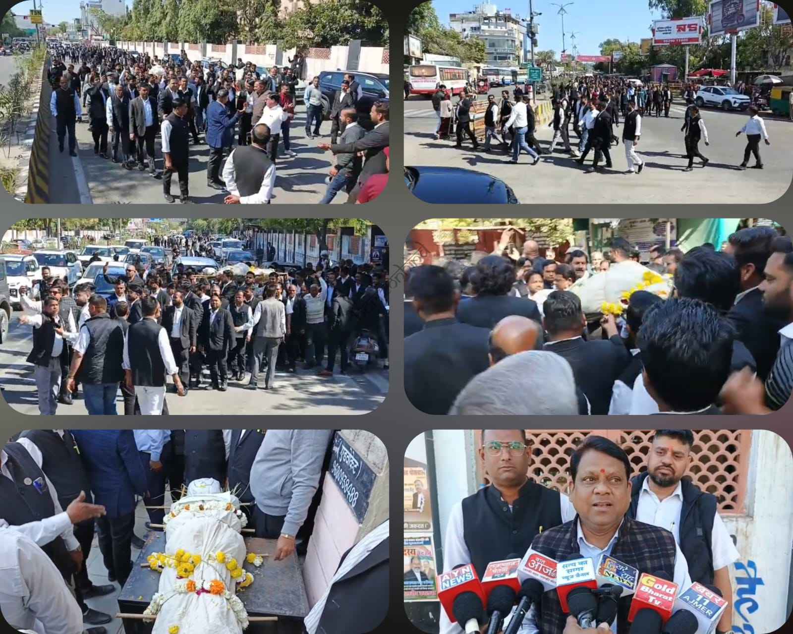 बार अध्यक्ष कार्यवाहक अध्यक्ष संदीप यादव एवं सचिव रूपेन्द्र कुमार परिहार ने बताया कि अधिवक्ताओ द्वारा किए जा रहे आंदोलन में शव यात्रा निकालकर घोर विरोध प्रदर्शन किया गया। जिले के सभी बार द्वारा समर्थन दिया गया है न्यायालय का कार्य स्थगित है ।अजमेर जिले की सभी बार द्वारा समर्थन कर उनके न्यायालयों का भी कार्य बहिष्कार किया गयl जिला बार एसोसिएशन अजमेर को जिले की अन्य बार राजस्व मण्डल राजस्थान अजमेर, नसीराबाद बार, पुष्कर बार व केकडी बार का भी पूरजोर समर्थन मिला है।