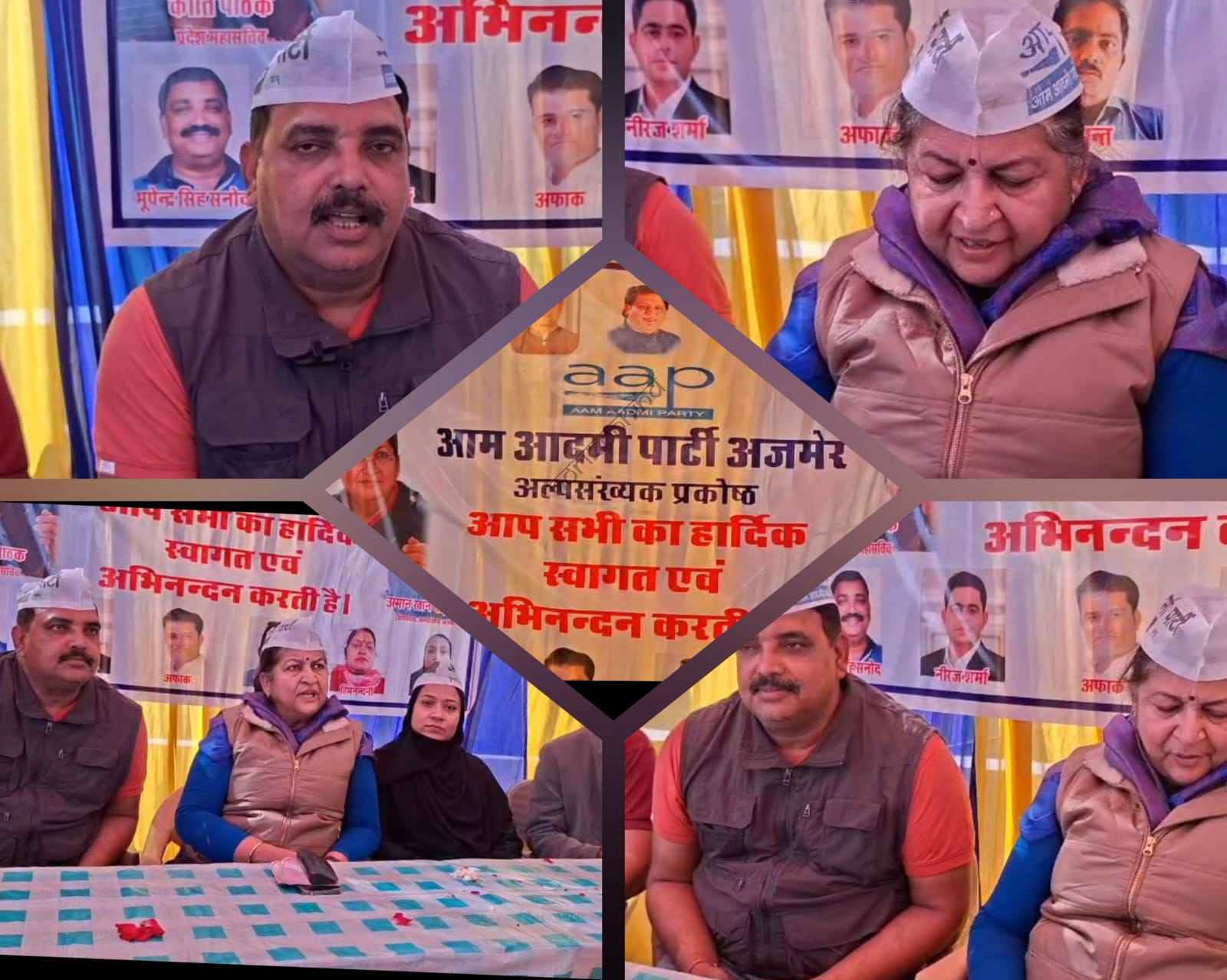 रविवार को आम आदमी पार्टी अजमेर की माइनॉरिटी विंग द्वारा प्रदेश व जिले के पदाधिकारियों के साथ मीडिया के साथ संवाद करते हुए यह बताया गया कि आगामी दिनों में होने वाले नगर निगम चुनाव में आम आदमी पार्टी सभी 80 वार्डों में अपने प्रत्याशी पार्टी के सिंबल पर चुनाव मैदान में उतारने जा रही है। अजमेर में कांग्रेस और भाजपा की कुशासन को खत्म कर अब एक कर्मठ और जनहित के बोर्ड का गठन होगा जो जो शहर में व्याप्त गंदगी भ्रष्टाचार को खत्म कर अजमेर को एक सुंदर शहर बनाने का काम करेगी।