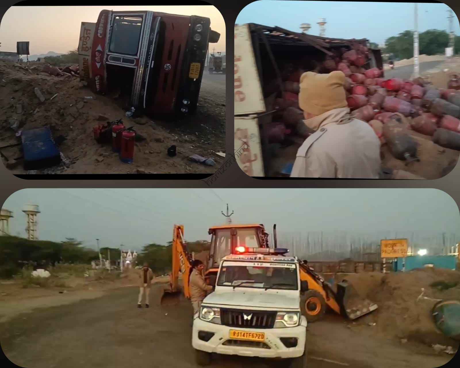 अजमेर–नागौर नेशनल हाईवे पर शुक्रवार सुबह बड़ा हादसा टल गया। देवनगर पुलिया निर्माण स्थल के पास सुबह करीब 5 बजकर 30 मिनट पर एलपीजी गैस सिलेंडरों से भरा एक टैंकर अनियंत्रित होकर पलट गया। गनीमत रही कि किसी भी सिलेंडर में लीकेज नहीं हुआ, वरना बड़ा विस्फोट हो सकता था।