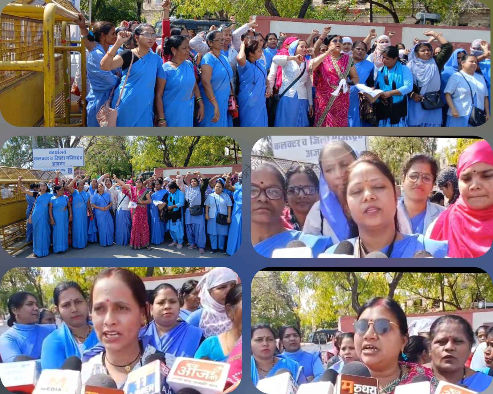 अजमेर जिले में कार्य करने वाली आंगनबाड़ी कार्यकर्ताओं और सहायिकाओं ने सोमवार को जिला कलेक्ट्रेट पहुंचकर जिला कलेक्टर को मांग पत्र सौंप कर पांच माह से लंबित मानदेय भुगतान शीघ्र कराने, मानदेय की राशि को बढ़ाने और मेडिकल सेवा के अलावा अन्य सेवाओं में ना संलग्न करने की मांग की है।आंगनबाड़ी कार्यकर्ताओं ने बताया कि उन्हें अतिरिक्त कार्य का कोई अतिरिक्त मानदेय भुगतान भी नहीं किया जाता। इसलिए उनकी अपील है कि उन्हें अन्य कार्यों से मुक्त किया जाए ताकि वह आंगनवाड़ी में होने वाले कार्यों को पूरी निष्ठा और कर्तव्य के साथ कर सके।पूरी निष्ठा के साथ कार्य करने के बावजूद उन्हें पिछले पांच माह से मानदेय का भुगतान नहीं किया गया है। न हीं मेडिकल का भुगतान हुआ है।ऐसे में उनके सामने घर परिवार चलाने का संकट खड़ा हो रहा है। आंगनबाड़ी कार्यकर्ताओं के लिए पेंशन स्कीम भी नहीं है। इन सब मांगों को सरकार संज्ञान में लेकर जल्द पूरा कर राहत प्रदान करें अन्यथा आंगनवाड़ी कार्यकर्ता और सहायिकाएं आंदोलन पर उतारू हो जाएगी।