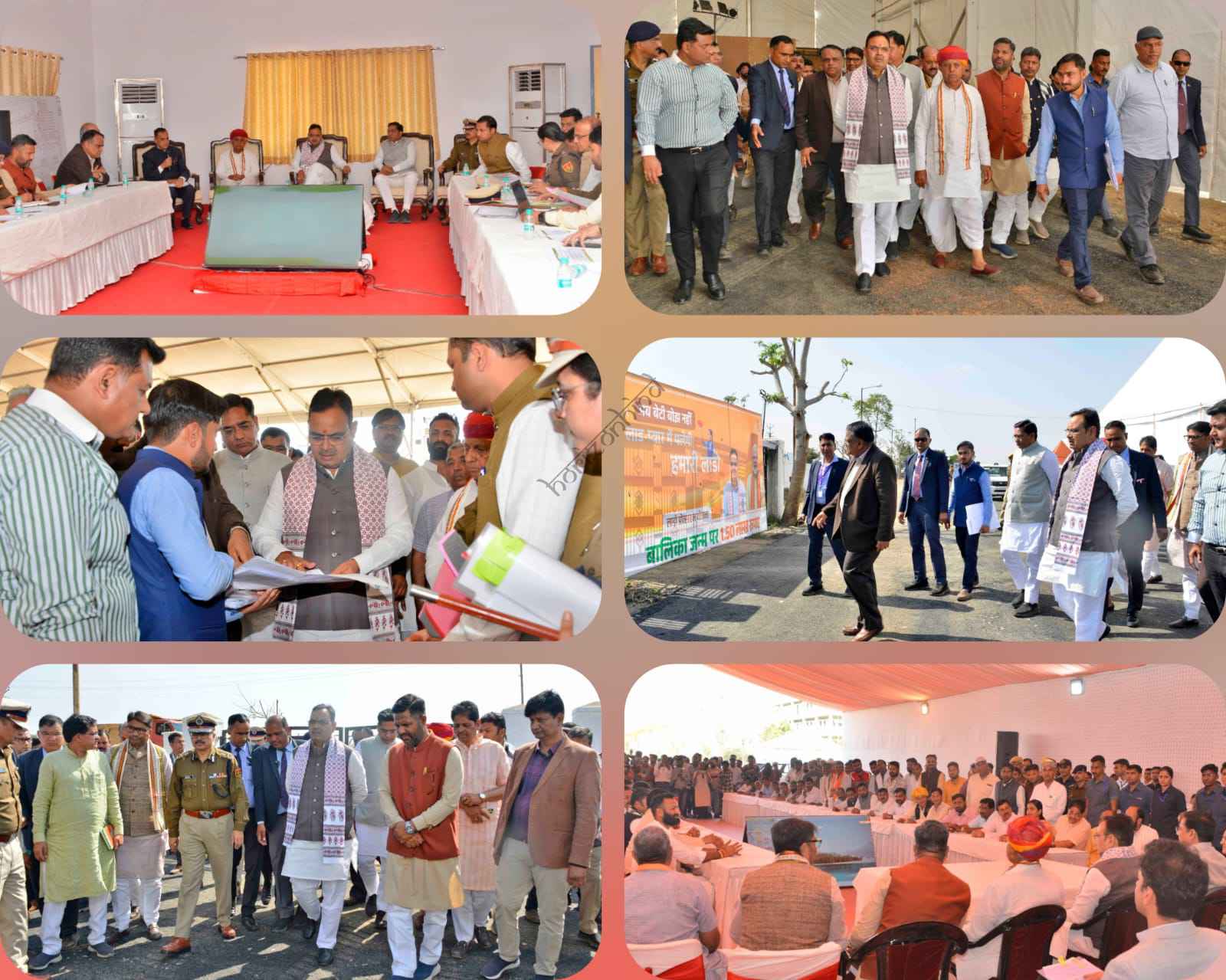 जयपुर/अजमेर , 24 फरवरी। मुख्यमंत्री श्री भजनलाल शर्मा ने मंगलवार को अजमेर पहुंचकर प्रधानमंत्री श्री नरेन्द्र मोदी की 28 फरवरी को प्रस्तावित यात्रा की तैयारियों का जायजा लिया। श्री शर्मा ने सभा स्थल कायड़ विश्राम स्थली का अवलोकन किया और उच्च अधिकारियों की बैठक ली। उन्होंने कार्यक्रम के सफल आयोजन के लिए अधिकारियों को आवश्यक दिशा-निर्देश दिए। श्री शर्मा ने आयोजन स्थल पर आगंतुकों के बैठने की व्यवस्था, पेयजल, चिकित्सा, विद्युत आपूर्ति, पार्किंग, यातायात, सुरक्षा सहित अन्य महत्वपूर्ण व्यवस्थाओं के लिए अधिकारियों को निर्देश दिए। उन्होंने कहा कि ट्रैफिक पुलिस और परिवहन विभाग आपसी समन्वय के साथ काम करें, ताकि यातायात सुचारू रहने के साथ पार्किंग की पर्याप्त व्यवस्था सुनिश्चित हो सके।मुख्यमंत्री ने कहा कि प्रधानमंत्री श्री मोदी इस मौके पर राजस्थान को विभिन्न विकास कार्यों के लोकार्पण और शिलान्यास की सौगातें देंगे। इस दौरान एचपीवी वैक्सीन की लॉन्चिंग भी की जाएगी। साथ ही, बड़ी संख्या में युवाओं को नियुक्ति पत्र भी प्रदान किए जाएंगे। उन्होंने अधिकारियों को निर्देश दिए कि सभी तैयारियों को समय पर पूरा किया जाए।