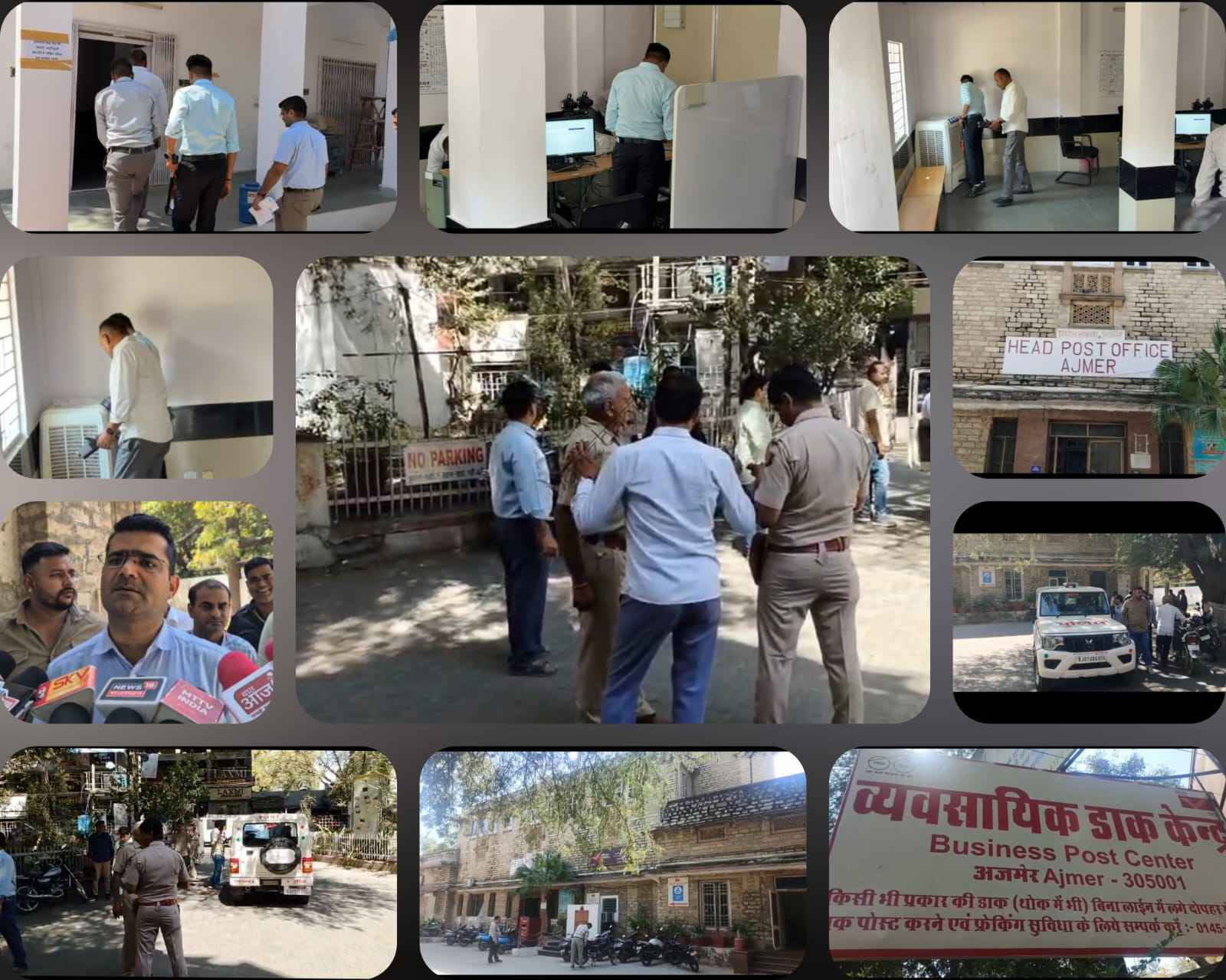 अजमेर में बार-बार सरकारी कार्यालय को बम से उड़ाने की मिल रही है धमकियों के बीच आज एक बार फिर मुख्य डाकघर और पासपोर्ट ऑफिस को मिला बम से उड़ाने की धमकी का ईमेल