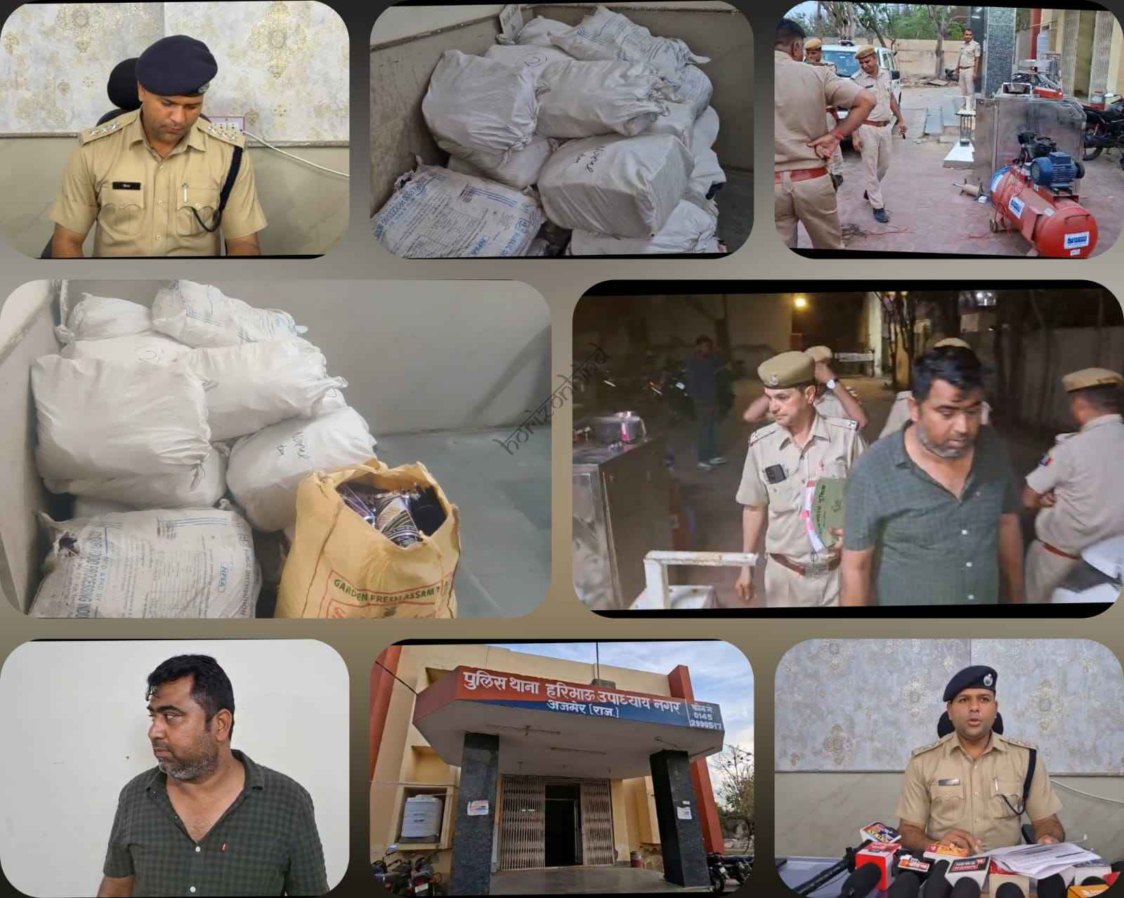 अजमेर के हरिभाऊ उपाध्याय नगर थाना अंतर्गत पुलिस ने ट्रेड मार्क एक्ट के तहत बड़ी कार्रवाई करते हुए ब्रांडेड कंपनियों के नाम पर नकली मोनोग्राम लगाकर ब्रांडेड सामान बेचने वाले गिरोह का भंडाफोड़ किया है। पुलिस ने किराए के मकान में चल रही एक अवैध पैकिंग फैक्ट्री पर दबिश देकर दो आरोपियों को गिरफ्तार किया है, जो नकली उत्पादों को ब्रांडेड कंपनियों के नाम से पैक कर बाजार में सप्लाई कर रहे थे। पुलिस ने कार्रवाई करते हुए हरिभाऊ उपाध्याय नगर निवासी 42 वर्षीय दीपक धनवानी और रामगंज निवासी दिलीप बुधवानी को गिरफ्तार किया है, आरोपी दीपक धनवानी को रिमांड पर लिया गया है। मौके से पैकिंग में इस्तेमाल होने वाली मशीनें भी जब्त की गई हैं।