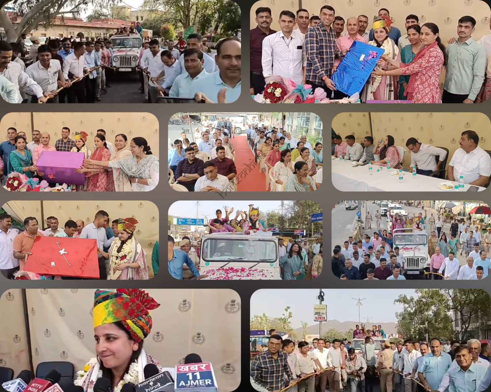 डेढ़ साल तक अजमेर जिला पुलिस अधीक्षक का दायित्व संभालने वाली श्रीमती बंदिता राणा का तबादला जयपुर सतर्कता विभाग में हो जाने के पश्चात रविवार को जिला पुलिस अधिकारी और कार्मिकों द्वारा उन्हें अजमेर से भावभीनी विदाई देकर विदा किया गया इस दौरान पुलिस अधीक्षक कार्यालय में एक विदाई समारोह का आयोजन किया गया जहां विदाई समारोह में पुलिस अधिकारियों और कार्मिकों ने साथ किए काम के अनुभव साझा किए।महिला पुलिस कार्मिकों ने माला साफा पहनाकर कसम्मान और स्वागत किया,सभी ने पुष्पगुच्छ भेंट कर स्मृति स्वरूप उपहार प्रदान किए।महिला पुलिसकर्मियों ने कुर्सी सहित कंधों पर उठाकर खुली जीप में बिठाया,