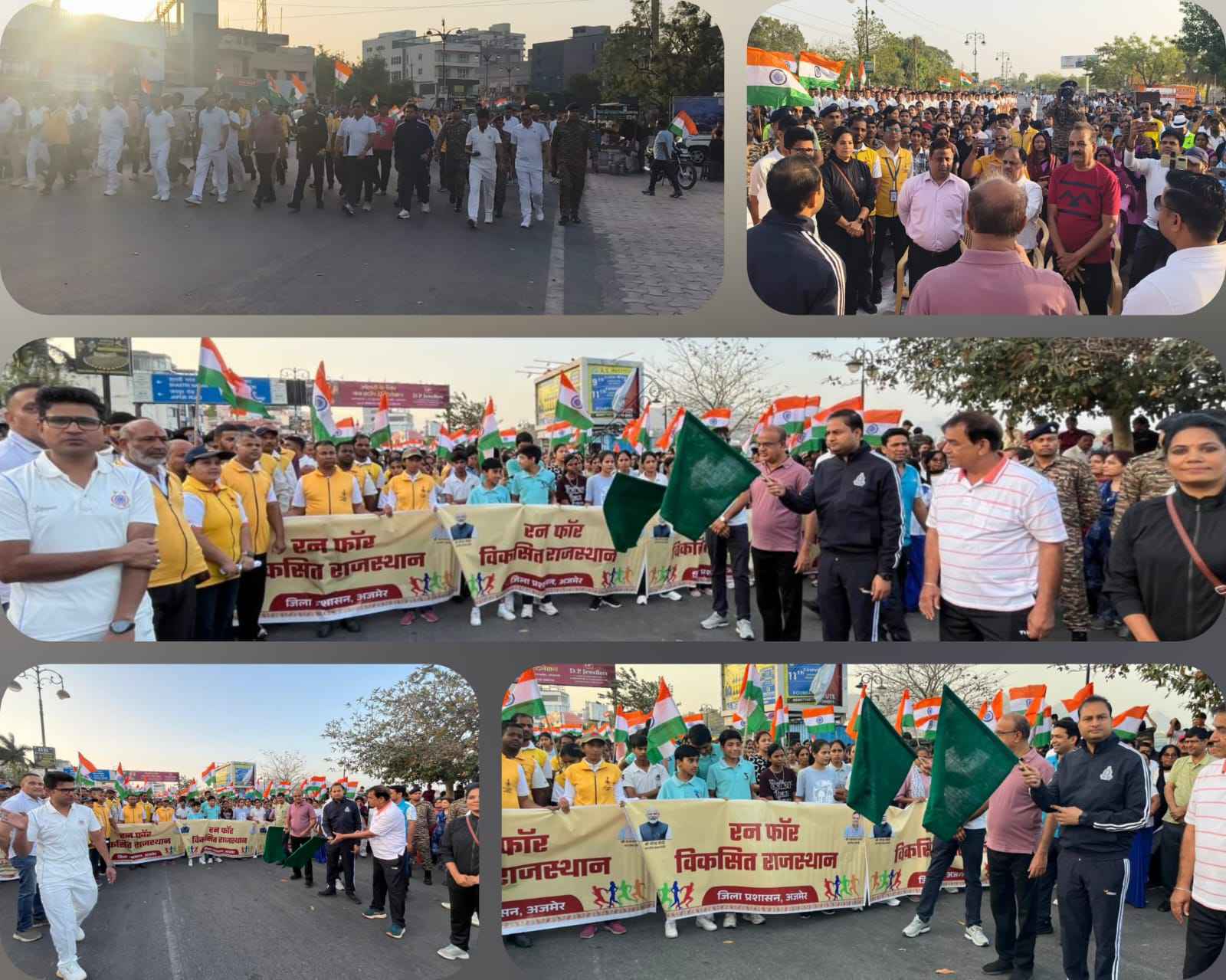 अजमेर, 15 मार्च। राजस्थान दिवस समारोह-2026 के अंतर्गत रविवार को जिला मुख्यालय पर रन फॉर विकसित राजस्थान का आयोजन उत्साहपूर्वक किया गया। पुरानी चौपाटी से संभागीय आयुक्त श्री शक्ति सिंह राठौड़ एवं जिला कलक्टर श्री लोकबंधु ने हरी झंडी दिखाकर रवाना किया। इस अवसर पर बड़ी संख्या में युवाओं, महिलाओं, छात्र-छात्राओं, खिलाड़ियों तथा विभिन्न विभागों के अधिकारियों एवं कर्मचारियों ने भाग लेकर विकसित राजस्थान के संकल्प को साकार करने का संदेश दिया।