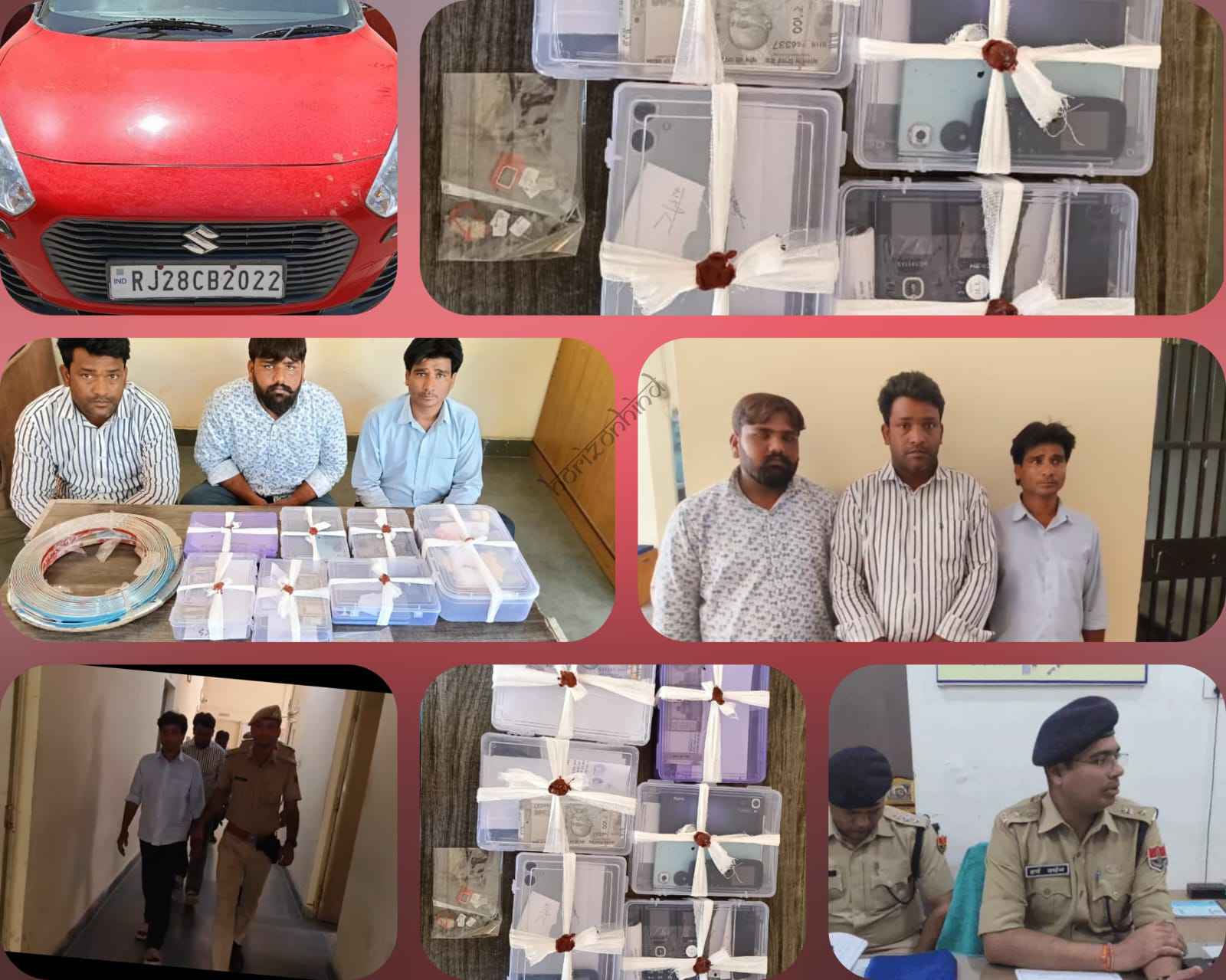 आरोपियों से ठगी के प्रयोग में लिए गए 6 एंड्राइड फोन 6 कीपैड मोबाइल सहित कुल 12 मोबाइल फोन ओर 9 सिम कार्ड जप्त, आरोपियों द्वारा वारदात में प्रयुक्त स्विफ्ट कार जब्त,