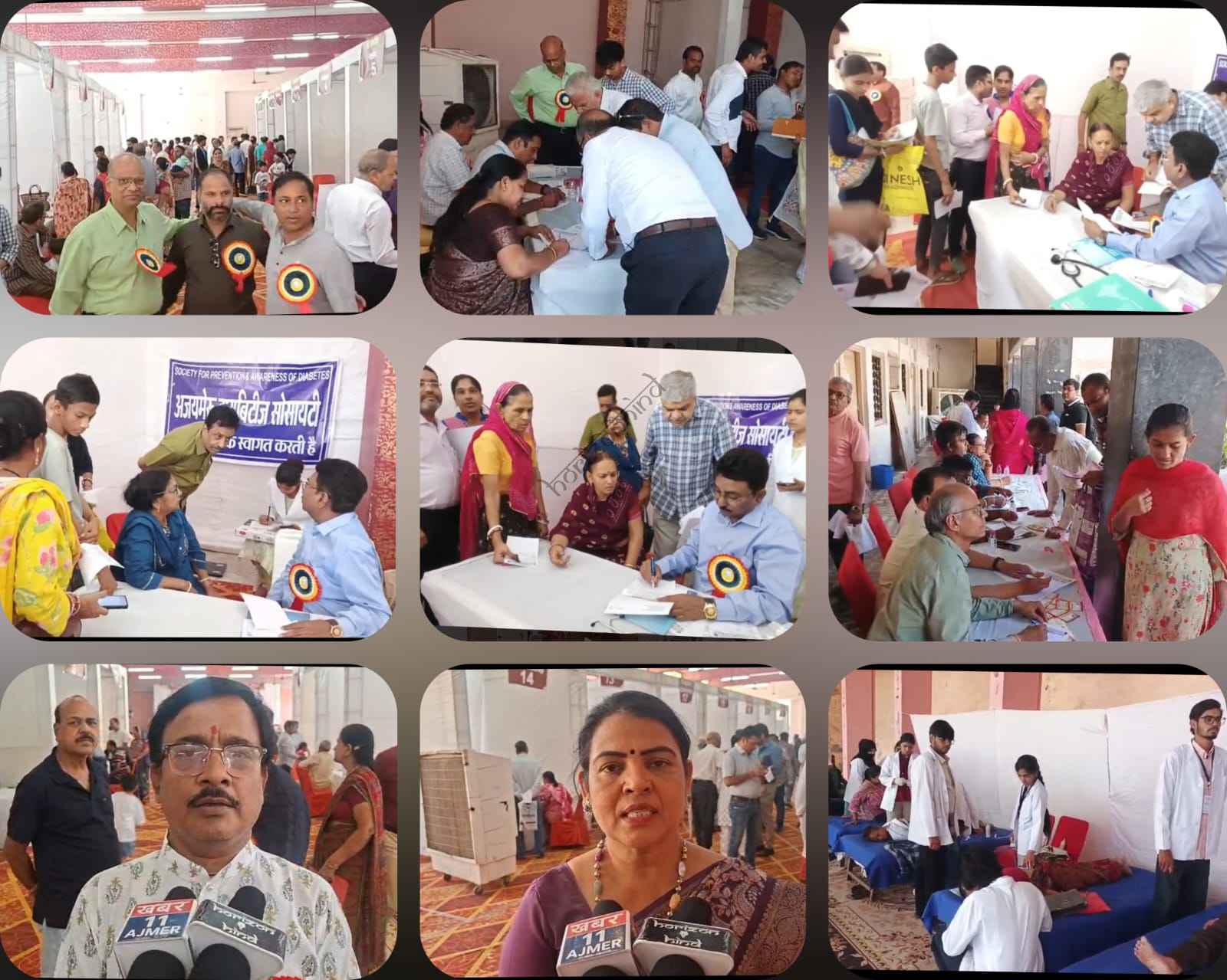 अजमेर। श्री अग्रवाल पंचायत मारवाड़ी धडा जनकपुरी गंज व भारत विकास परिषद महाराणा प्रताप शाखा के संयुक्त तत्वावधान में गंज स्थित जनकपुरी में 12 अप्रैल 2026, रविवार सुबह 10 बजे से दोपहर 3 बजे तक निशुल्क चिकित्सा एवं जांच शिविर आयोजित किया गया। अग्रवाल पंचायत मारवाड़ी धड़ा के अध्यक्ष संजय कंदोई और सचिव विनोद डिडवानिया ने बताया कि अजमेर वासियों को स्वास्थ्य लाभ देने के लिए आयोजित इस निःशुल्क चिकित्सा एवं जांच शिविर में अमेरिका के डायबिटिक व हार्ट स्पेशलिस्ट डॉ प्रकाश डीडवानिया और उनके साथ उनकी पूरी टीम अपनी सेवाएं दे रही है। साथ ही शिविर के दौरान अजमेर के जाने माने स्पेशलिस्ट डॉक्टर अजय गर्ग, डॉक्टर रोहिताश्व, डॉक्टर अवि गुप्ता, डॉक्टर देवांशू, डॉक्टर हिमांशु शर्मा, डॉक्टर भूमिका, डॉक्टर कनिका सिंघल, डॉक्टर शिरीष शर्मा, डॉक्टर रिया शर्मा, डॉक्टर रामनिवास विंदा, डॉक्टर विकास गुप्ता व डॉक्टर जगदीश डॉक्टर्स हृदय रोग, नेत्र रोग, अस्थि रोग, नाक, कान व गला रोग, चर्म रोग, दंत रोग, शिशु रोग, न्यूरो, फिजिशियन व सर्जन रोग विशेषज्ञ डॉक्टर्स अपनी बेहतर सेवाएं के साथ मरीजों को निःशुल्क उपचार व परामर्श दे रहे हैं।