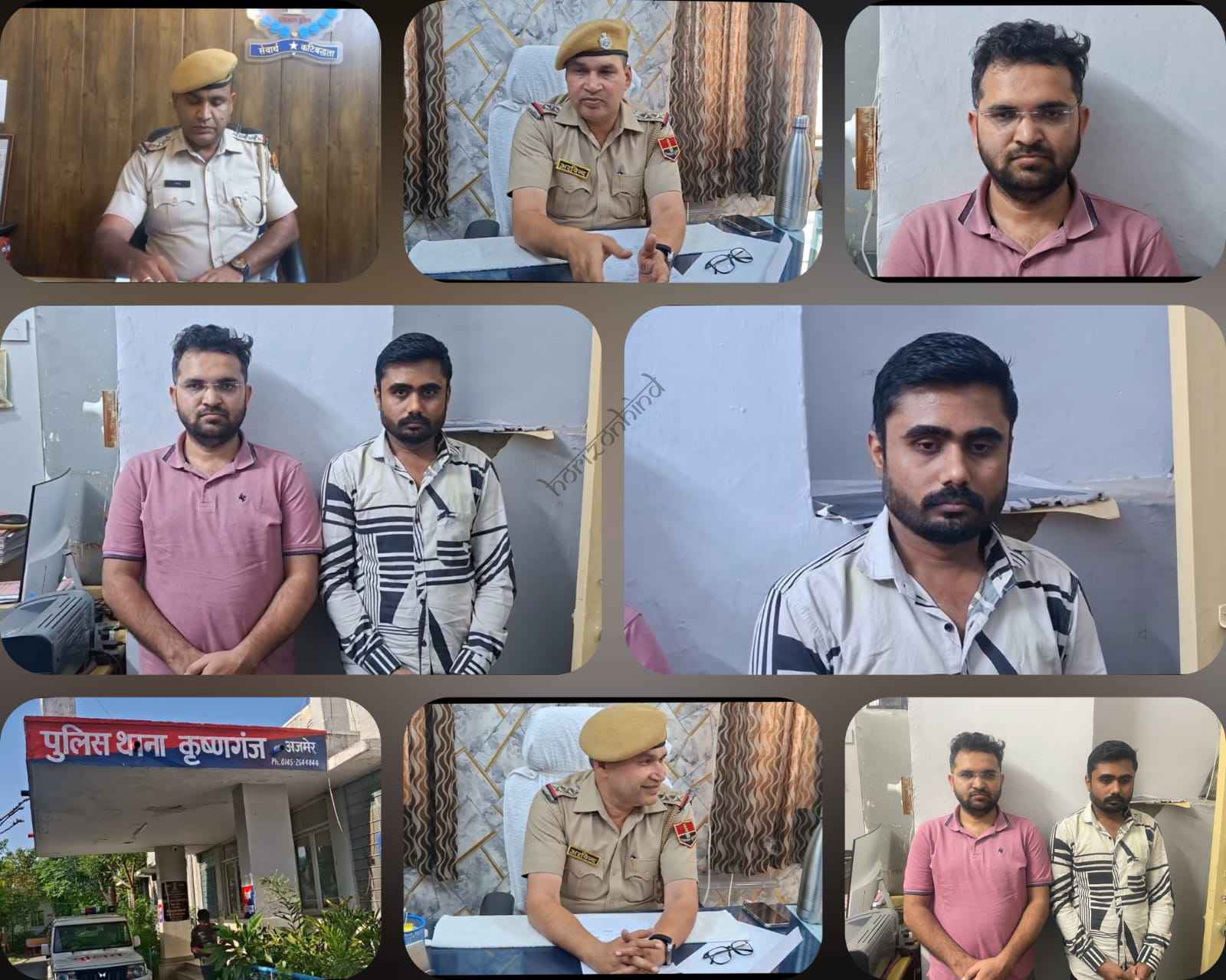 अजमेर के कृष्णगंज थाना क्षेत्र में नाबालिग पीड़िता से दुष्कर्म और ब्लैकमेल के मामले में पुलिस ने कार्रवाई करते हुए दो आरोपियों को गिरफ्तार किया है। 11 अप्रैल 2026 को पीड़िता ने कृष्ण गंज थाना पुलिस को शिकायत दर्ज करवाई।पुलिस ने कार्यवाही करते हुए सरकारी डॉक्टर. कैलाश कुमार और ई-मित्र संचालक खुशाल चौहान को बीएनएस और पॉक्सो एक्ट की धाराओं में गिरफ्तार किया गया है। पुलिस अधीक्षक हर्षवर्धन अग्रवाला के निर्देश पर गठित विशेष टीम ने तकनीकी साक्ष्यों और सूचना के आधार पर आरोपियों को पकड़ा। जांच में सामने आया कि डॉक्टर ने अस्पताल से पीड़िता का नंबर लेकर संपर्क किया और फ्लैट पर बुलाकर दुष्कर्म कर अश्लील फोटो-वीडियो बनाए। बाद में इन्हें वायरल करने की धमकी देकर लगातार शोषण करता रहा। वहीं, ई-मित्र संचालक ने प्रिंटआउट के बहाने पीड़िता का फोन लेकर फोटो-वीडियो हासिल किए और ब्लैकमेल कर कई बार दुष्कर्म किया।पुलिस ने कार्यवाही करते हुए दोनों आरोपियों को गिरफ्तार किया है। दोनों आरोपियों से पुलिस पूछताछ कर रही है।