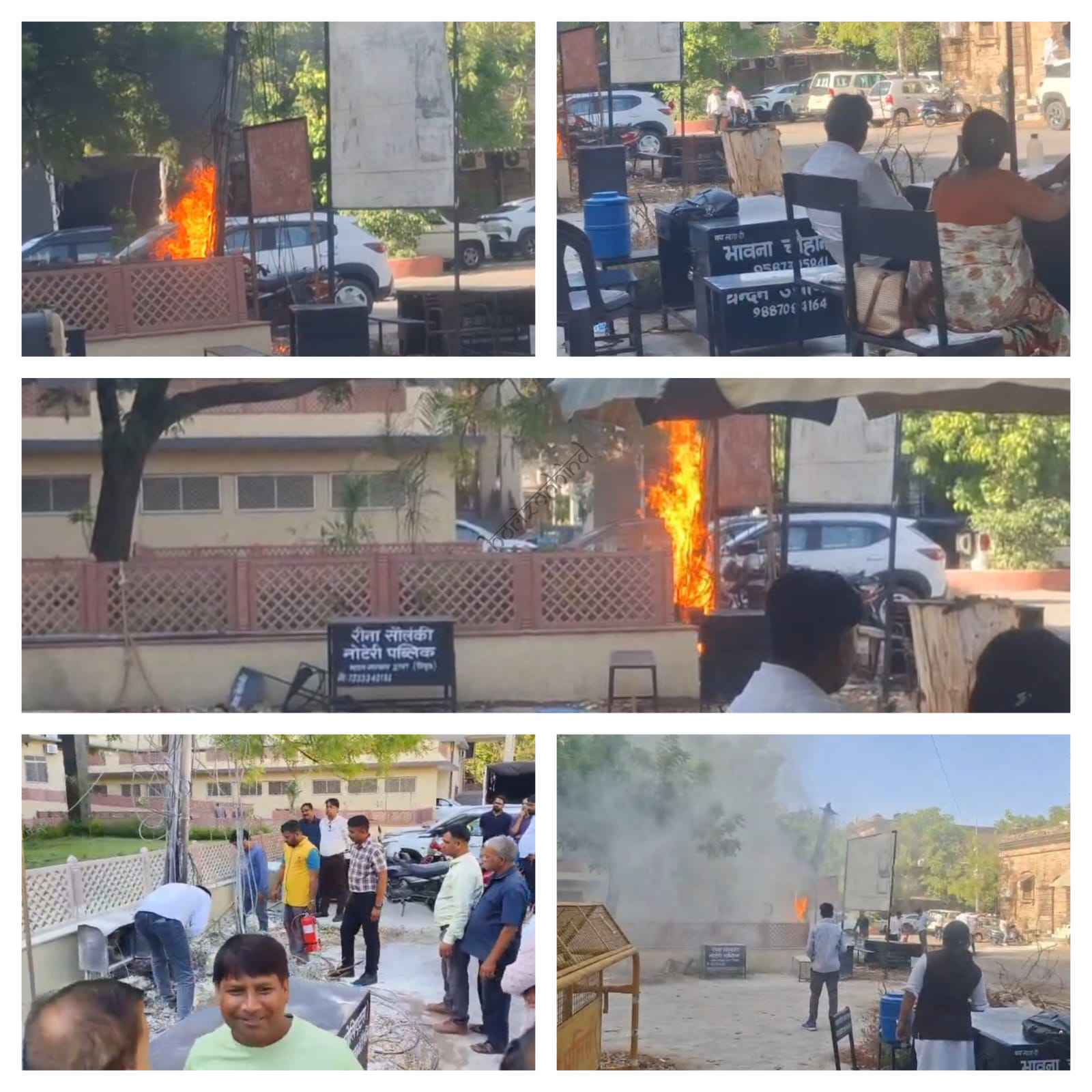 जिला कलेक्ट्रेट में बनी नई बिल्डिंग के पास एक इलेक्ट्रिक पोल के नीचे लगी डीपी में मंगलवार दोपहर अचानक आग लग गई। कुछ देर में आग ने विकराल रूप धारण कर लिया। नजदीकी सिविल डिफेंस ऑफिस है जहां से अधिकारियों ने आग को देखकर तत्काल स्वयंसेवकों को भेजा और सभी ऑफीस में से फायर एक्सटिंग्विशर मंगाकर आग को बुझाया गया। हालांकि आग से कोई जनहानी नहीं हुई है लेकिन कलेक्टर कार्यालय की फाइबर लाइन, बीएसएनएल लाइन और इलेक्ट्रिक लाइन जल जाने से कार्य ठप हो गया। फिलहाल मरम्मत का काम शुरू कर दिया गया है।