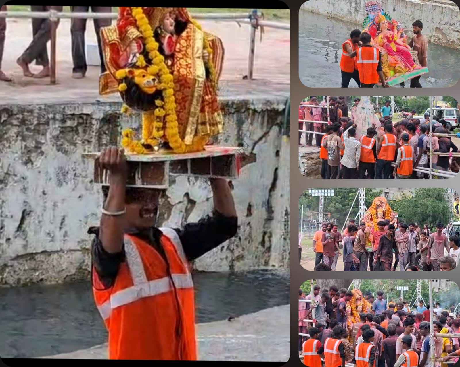 अजमेर न्यूज़: शारदीय नवरात्र के मौके पर माता भक्तों द्वारा नौ दिनों तक घरों और पंडालून में माता रानी को विराजित कर नियमित सुबह और शाम पूजा अर्चना सेवा आदि की गई लेकिन आज दशहरे के दिन विधि अनुसार दुर्गा माता की प्रतिमाओं को से सम्मान ढोल बाजों के साथ विदाई भी दी गई माता भक्तों ने बताया कि 9 दिनों तक माता रानी के साथ पूजा अर्चना और गरबा नृत्य की बीच ऐसा संबंध बना की माता रानी को विदाई देने की इच्छा नहीं है लेकिन विधि का विधान है सभी को आना है और सभी को जाना है इसी परंपरा को निर्वहन करते हुए आज भारी मन से माता रानी की प्रतिमाओं को आजाद पार्क में बनाए गए अस्थाई कुंड में विसर्जित किया गया है विसर्जन से पूर्व माता रानी की पूजा अर्चना की गई और प्रसाद भी बांटा गया भक्तों ने कहा कि माता रानी हर वर्ष आए और सभी का कल्याण करें सभी की मनोकामनाएं पूर्ण करें ऐसी ही कामना की गई है। विसर्जन के मौके पर अजमेर में 400 से ज्यादा छोटी बड़ी प्रतिमाएं विसर्जित की गईं। आजाद पार्क में नगर निगम की ओर से व्यवस्था की थी, वहीं कई इलाकों में क्षेत्रवासियों ने अपने स्तर पर ही प्रतिमाओं का विसर्जन किया। सवारी रवाना होने से पहले माता जी की पूजा अर्चना कर भोग लगाया गया। इसके बाद यात्राएं निकाली गई। सुबह 10 बजे बाद से ही शहरवासी टेंपो अन्य वाहनों में माता जी की प्रतिमाएं लेकर रवाना होने लगे। ढोल और डीजे के साथ भक्तगण आजाद पार्क पहुंचे। आजाद पार्क में मेले जैसा माहौल रहा। खास बात यह रही की 70% प्रतिमाएं छोटी थी, इसलिए कुंड में विसर्जन करने के लिए ज्यादा लाइन नहीं लगी। नगर निगम की ओर से सुबह ही माता दुर्गा की प्रतिमा को विसर्जित कर दिया गया।